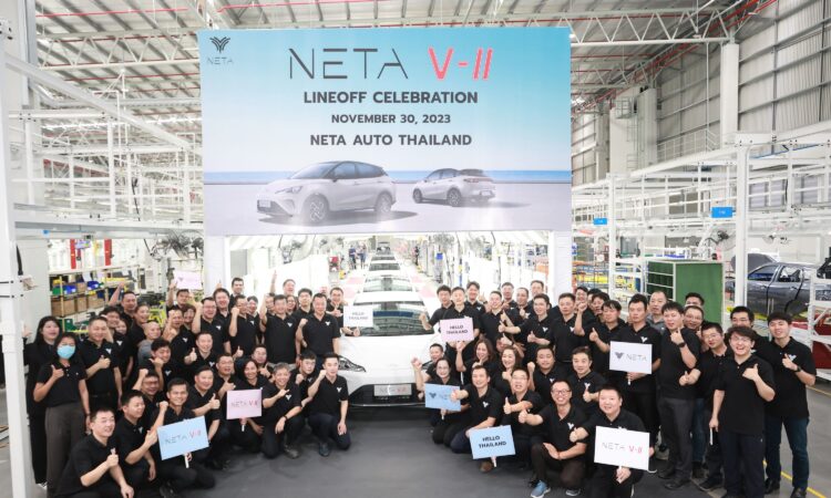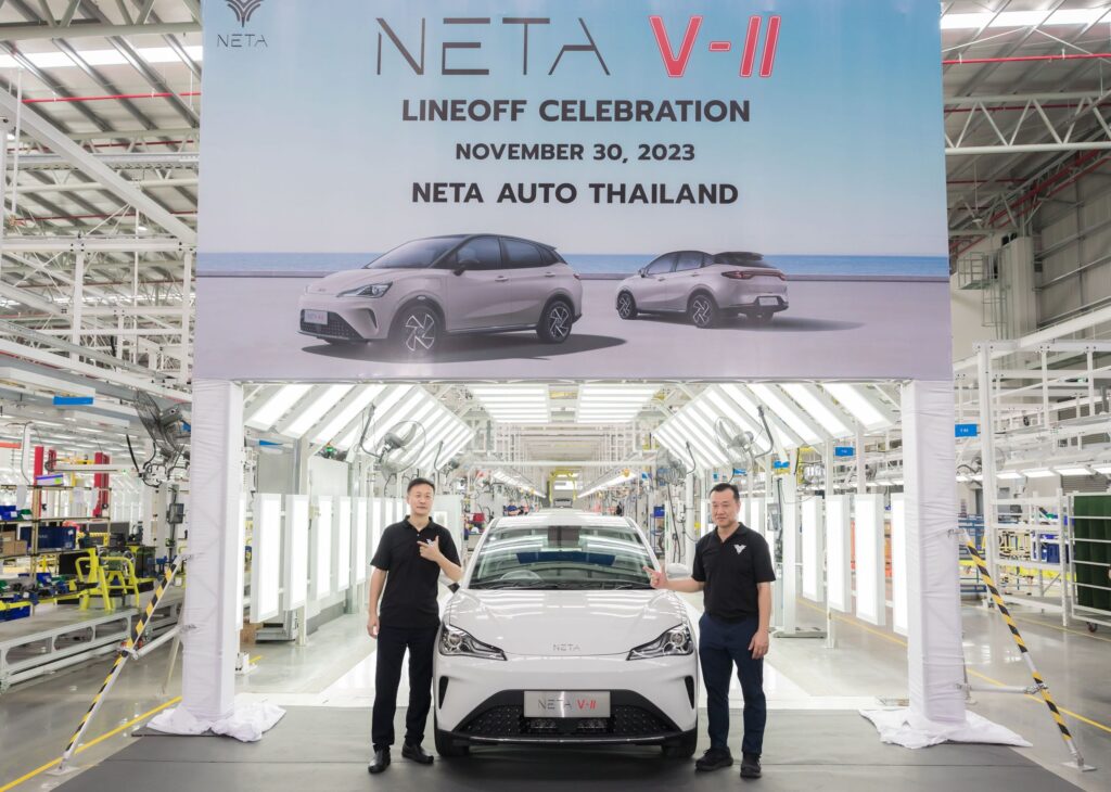 บริษัท เนต้า ออโต้ (ไทยแลนด์) จำกัด จับมือพันธมิตร บางชันเยนเนอเรลเอเซมบลี ประกาศพร้อมประกอบรถยนต์พลังงานไฟฟ้ารุ่นพวงมาลัยขวาในประเทศไทย ประเดิมปล่อย NETA V-II เป็นรุ่นแรกออกจากสายพานการผลิตก่อนจะเริ่มผลิตอย่างเป็นทางการเพื่อการจัดจำหน่ายในประเทศไทยในไตรมาสแรกปี 2567