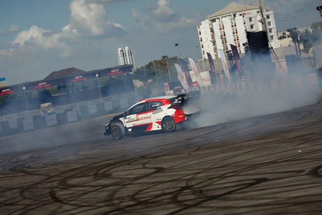เขาสาธิตการขับรถแข่งประเภทต่างๆ เช่น การดริฟท์รถ Rally1 ซึ่งเป็นหนึ่งในรถแรลลี่ที่ขับยากที่สุด