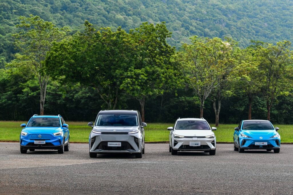 เอ็มจี ในฐานะผู้บุกเบิกตลาดรถยนต์พลังงานไฟฟ้าในประเทศไทย พร้อมมอบประโยชน์สูงสุด หนุนให้คนไทยได้ใช้รถยนต์พลังงานไฟฟ้าอย่างเต็มที่ โดยปัจจุบัน มีรถยนต์ไฟฟ้า อยู่ในตลาดประเทศไทย แล้ว 5 รุ่นได้แก่ MG ZS EV MG EP MG ES MG4 ELECTRIC และ MG MAXUS 9 และยังมีแผนนำเสนอรถยนต์พลังงานไฟฟ้ารุ่นใหม่สู่ตลาดในประเทศไทยอย่างต่อเนื่อง โดย เอ็มจี มุ่งมันในการสร้างระบบนิเวศยานยนต์ไฟฟ้า (EV Ecosystem) ให้แข็งแกร่งเพื่อให้คนไทยได้มีโอกาสเข้าถึงรถยนต์พลังงานไฟฟ้าได้ง่าย