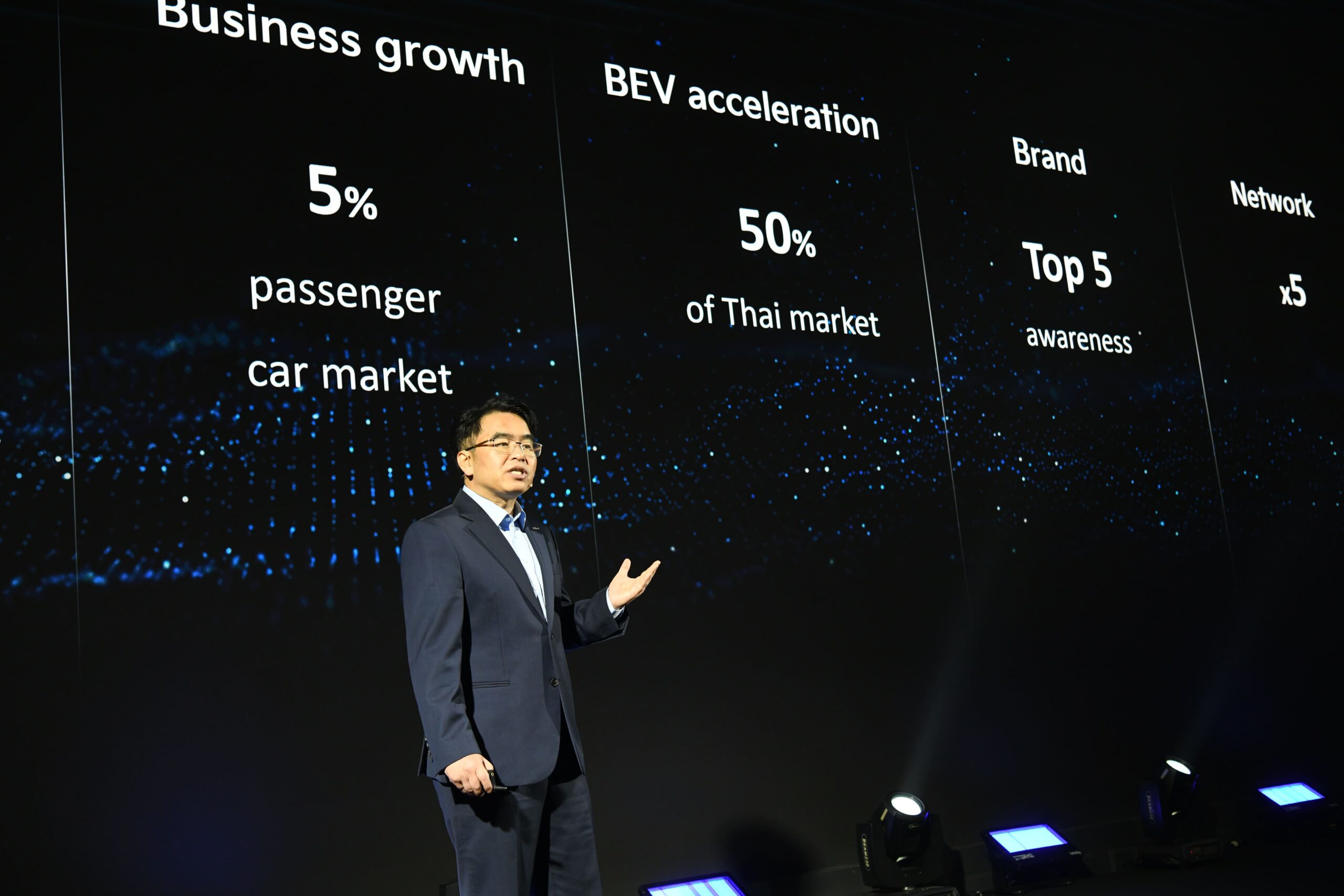 นายจุน โอ อี ประธาน บริษัท เกีย เซลส์ (ประเทศไทย) จำกัด กล่าวว่า “วันนี้นับเป็นโอกาสอันดีสำหรับก้าวแรกของการดำเนินงานของ เกีย เซลส์ (ประเทศไทย) ในการเข้าสู่ตลาดประเทศไทยอย่างเป็นทางการ แผนกลยุทธ์ Kia Plan S ของเราที่ใช้ในการดำเนินงานทั่วโลก มีรากฐานอยู่บนเสาหลัก 3 ประการ คือ โลก (Planet) ผู้คน (People) และผลกำไร (Profit) เพื่อหล่อเลี้ยงความไว้วางใจ และการมีส่วนร่วมระหว่างพนักงานของเรากับชุมชน เราจึงวางตำแหน่งของตนเองในฐานะ ‘Sustainable Mobility Solutions Provider’ หรือ ‘แบรนด์ที่มุ่งตอบโจทย์การเดินทางอย่างยั่งยืน’ ซึ่งถือเป็นปรัชญาประจำองค์กรของเราเพื่อก้าวสู่ความเป็นผู้นำอุตสาหกรรมยานยนต์ในอนาคต ในส่วนของ เกีย เซลส์ (ประเทศไทย) เราได้วางแผนการดำเนินงานขององค์กรไว้อย่างเป็นรูปธรรมเพื่อบรรลุเป้าหมายทางธุรกิจของเราสำหรับปี 2567-2571 โดยให้ชื่อว่ากลยุทธ์ ‘Plan S-5’ ซึ่งประกอบด้วยเป้าหมายหลัก 4 ประการ ได้แก่ 1) ครองส่วนแบ่ง 5% ของตลาดรถยนต์นั่งส่วนบุคคล, 2) เพิ่มการทำตลาดรถยนต์ที่ขับเคลื่อนด้วยไฟฟ้าเพียงอย่างเดียวให้มีสัดส่วนคิดเป็น 50% ของยอดจำหน่ายทั้งหมด, 3) ก้าวขึ้นสู่ทำเนียบแบรนด์ที่มีการรับรู้สูงที่สุด 5 อันดับแรก และ 4) ขยายเครือข่ายผู้จำหน่ายทั่วประเทศให้เติบโตขึ้น 5 เท่าตัว”
