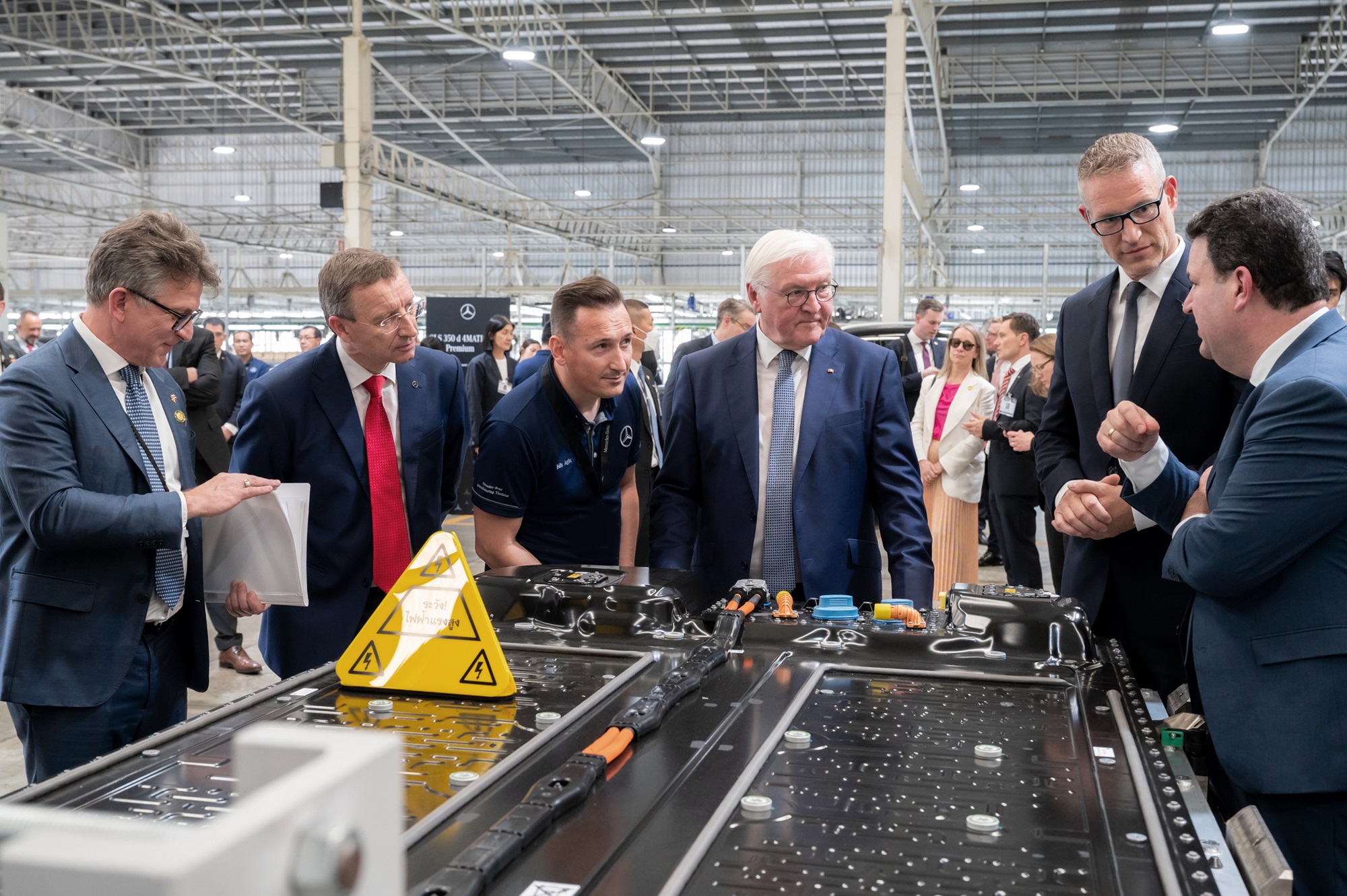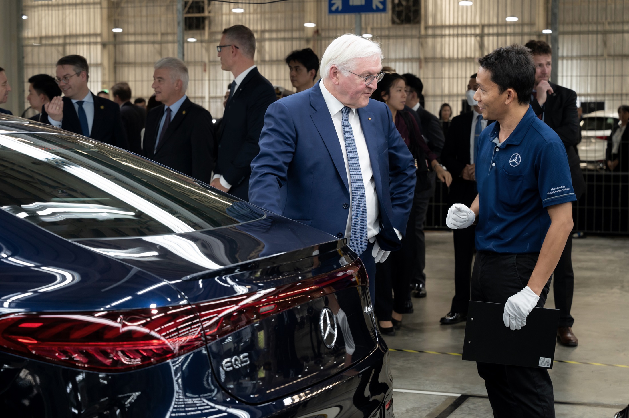 ดร. ฟรังค์-วัลเทอร์ ชไตน์ไมเออร์ ประธานาธิบดีแห่งสหพันธ์สาธารณรัฐเยอรมนี พร้อมคณะ เดินทางเยี่ยมชมโรงงานเมอร์เซเดส-เบนซ์ ณ จังหวัดสมุทรปราการ เมื่อวันที่ 25 มกราคม ที่ผ่านมา โดยมีทีมผู้บริหารจากเมอร์เซเดส-เบนซ์ ผู้แทนจากภาครัฐ และพันธมิตรธุรกิจ นำโดย มร. มาร์ทิน ชเวงค์ ประธานเจ้าหน้าที่บริหารและกรรมการผู้จัดการใหญ่ บริษัท เมอร์เซเดส-เบนซ์ (ประเทศไทย) จำกัด และ มร. มาร์ค เบอร์เกอร์ ประธานบริหาร บริษัท เมอร์เซเดส-เบนซ์ แมนูแฟคเจอริ่ง (ประเทศไทย) จำกัด พร้อมด้วย นายสุริยะ จึงรุ่งเรืองกิจ รัฐมนตรีว่าการกระทรวงคมนาคม