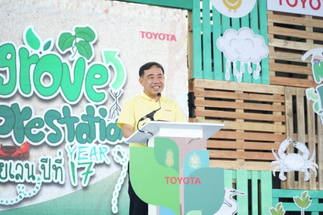 นายวัฒนา เจริญจิตร นายอำเภอเมืองสมุทรปราการ พลตรี ธวัช ชาลีรัตน์ รองเจ้ากรมพลาธิการทหารบก และนายสมคิด ประดิษฐกำจรชัย รองกรรมการผู้จัดการใหญ่ บริษัท โตโยต้า มอเตอร์ ประเทศไทย จำกัด พร้อมด้วยคณะผู้บริหารระดับสูงของโตโยต้า บริษัทในเครือฯ ผู้ผลิตชิ้นส่วนโตโยต้า ผู้แทนจำหน่ายโตโยต้า ตลอดจนหน่วยงานพันธมิตรทั้งภาครัฐ ภาคเอกชน และประชาชน ร่วมปลูกพันธุ์ไม้ชายเลนจำนวน 50,000 ต้น เพื่อเป็นส่วนหนึ่งในการมุ่งสู่เป้าหมาย สร้างความเป็นกลางทางคาร์บอน ภายใต้กิจกรรม “โตโยต้าปลูกป่าชายเลนปีที่ 17” ณ สถานตากอากาศบางปู จังหวัดสมุทรปราการ เมื่อวันที่ 3 มีนาคม 2567