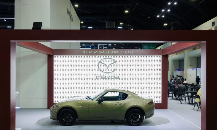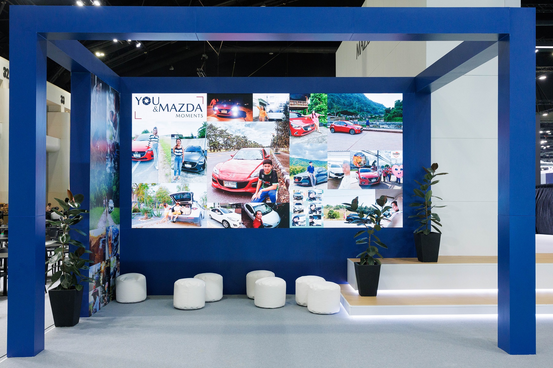 มาสด้าเนรมิตบูธจัดแสดงรถยนต์ที่ได้รับการออกแบบใหม่หมด ภายใต้ธีม Love of Cars เพื่อถ่ายทอดความมุ่งมั่นของมาสด้าในการพัฒนาเทคโนโลยีและผลิตภัณฑ์แห่งอนาคตที่กำลังดำเนินไปตามกรอบระยะเวลา ตอบสนองความต้องการของลูกค้าผู้ที่หลงไหลในการขับขี่และรักในรถยนต์ โดยแบ่งโซนจัดแสดงบอกเล่าเรื่องราวที่มีลูกค้าอยู่ในทุกช่วงเวลา และมีรถยนต์มาสด้าเป็นพาร์ทเนอร์ในทุกประสบการณ์ ตอกย้ำการให้ความสำคัญที่มีลูกค้าเป็นหนึ่งในทุกการเติบโต สื่อสารอารมณ์ความรู้สึก ความสนุกสนานในการขับขี่ ความสุขในการใช้ชีวิต และอนาคตที่รถยนต์มีส่วนช่วยยกระดับคุณภาพชีวิตของผู้คน รวมถึงเปิดโอกาสให้ผู้ที่ชื่นชอบรถยนต์ได้แบ่งปันความทรงจำที่มีต่อรถยนต์ร่วมกัน เพื่อพัฒนาความสัมพันธ์อันดีระหว่างลูกค้าและแบรนด์มาสด้าให้แนบแน่นยิ่งขึ้น พร้อมปลุกตำนานโรตารี่ด้วยการจัดแสดงเทคโนโลยีแห่งอนาคต Mazda MX-30 e-SKYACTIV R-EV ที่ผสานการทำงานร่วมกันระหว่างระบบไฟฟ้ากับเครื่องยนต์โรตารี่ กลายเป็น Plug-in Hybrid ที่ให้ทุกการเดินทางสะดวกสบายและไปได้ไกลกว่า มาให้คนไทยได้สัมผัสกันอย่างใกล้ชิด