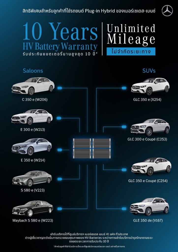 สำหรับการชาร์จไฟฟ้าแบบกระแสตรง (DC Charge) นอกจากรถยนต์พลังงานไฟฟ้า 100% จากแบรนด์เมอร์เซเดส-เบนซ์ ในรุ่น EQB 250, EQE 350 SUV, EQE 53, EQS 450+ และ EQS 500รถยนต์ปลั๊กอินไฮบริดในรุ่น C 350 e (W206), E 350 e (W214), S 580 e (V223), Maybach S 580 e (W223), GLC 350 e (X254), GLC 350 e Coupe (C254) และ GLE 350 de (V167) ยังสามารถรองรับการชาร์จในรูปแบบนี้ได้ด้วยเช่นกัน โดยถือเป็นความตั้งใจในการพัฒนาแบตเตอรี่แรงดันสูงของแบรนด์ เพื่อรองรับไลฟ์สไตล์การขับขี่และความสะดวกของผู้ที่ใช้งานรถยนต์พลังงานทางเลือกจากเมอร์เซเดส-เบนซ์ ทั้งนี้ ลูกค้าทุกคนที่ใช้รถยนต์ปลั๊กอินไฮบริดในรุ่นที่กำหนดจะได้รับสิทธิเพิ่มเติมสำหรับการรับประกันแบตเตอรี่แรงดันสูงนานสูงสุดถึง 10 ปี แบบไม่จำกัดระยะทาง
