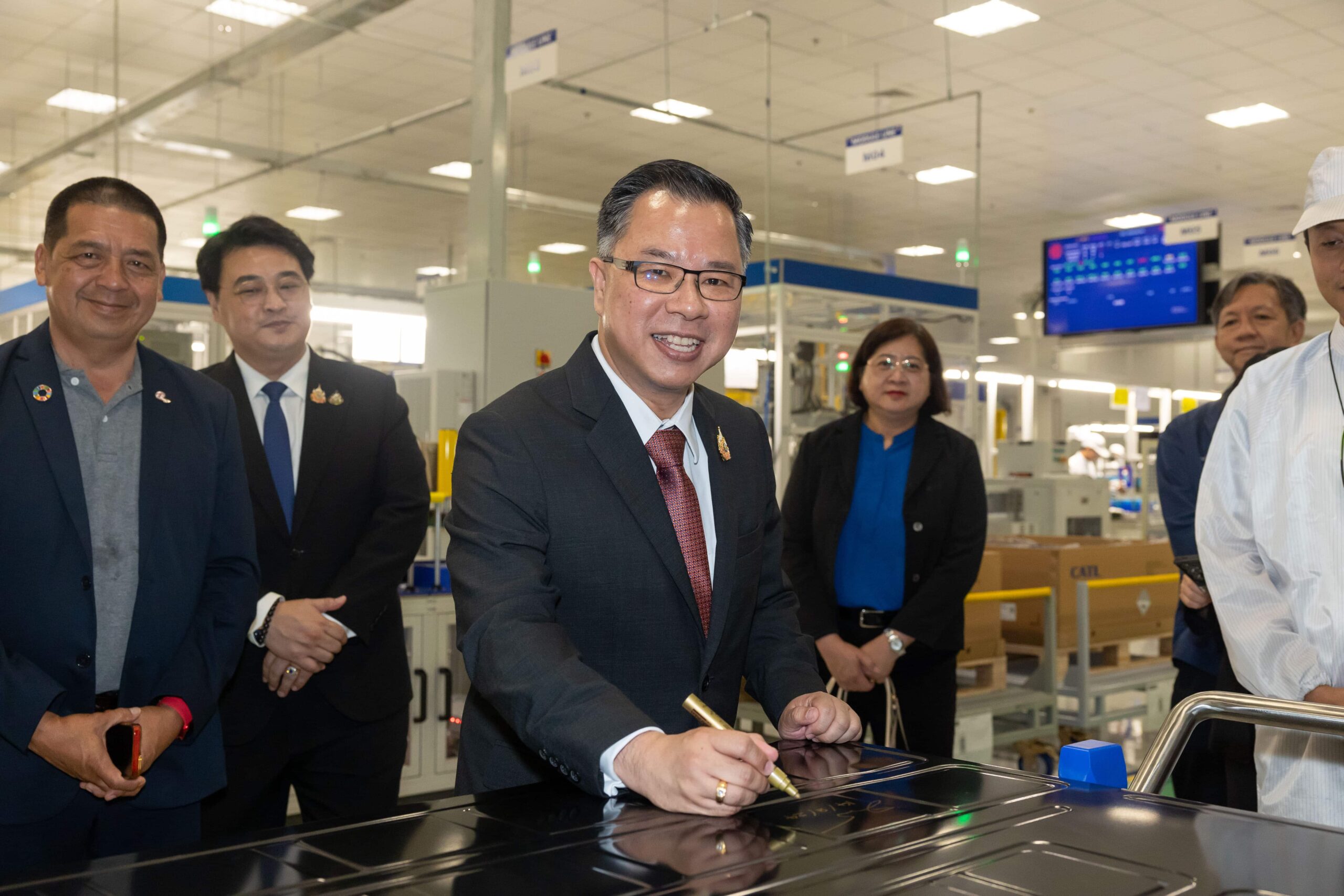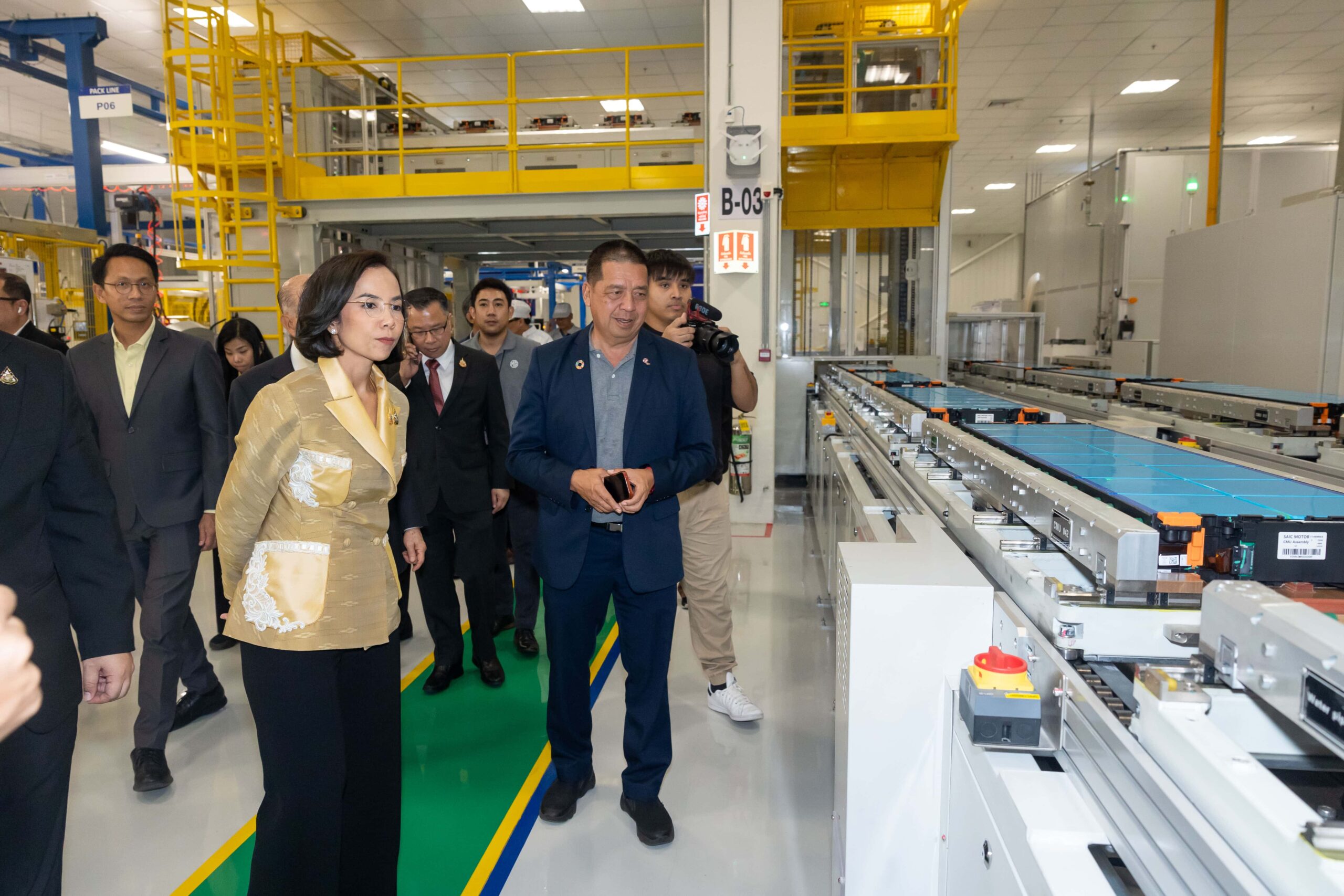 นับเป็นโอกาสครั้งสำคัญของ เอ็มจี ในการต้อนรับ นางสาวพิมพ์ภัทรา วิชัยกุล รักษาการรัฐมนตรีว่าการกระทรวงอุตสาหกรรม นายณัฐกร อุเทนสุต ที่ปรึกษาด้านพัฒนาระบบควบคุมทางสรรพสามิต และ นายนฤตม์ เทอดสถีรศักดิ์ เลขาธิการคณะกรรมการส่งเสริมการลงทุน (บีโอไอ) พร้อมคณะผู้บริหาร และหน่วยงานภาครัฐที่เกี่ยวข้องได้ให้เกียรติร่วมเปิดไลน์การผลิตรถยนต์ไฮบริดรุ่นล่าสุด ALL NEW MG3 HYBRID+ ก่อนเปิดตัว อย่างเป็นทางการในไทย วันที่ 20 สิงหาคม นี้ พร้อมเยี่ยมชมโรงงานผลิตรถยนต์แบบครบวงจรของ เอ็มจี ซึ่งตั้งอยู่ที่นิคมอุตสาหกรรมดับบลิวเอชเออีสเทิร์นซีบอร์ด 2 (WHA ESIE 2) จังหวัดชลบุรี บนพื้นที่ทั้งหมด 437.5 ไร่ ที่พัฒนาขึ้นภายใต้งบการลงทุนที่สูงถึงกว่า 30,000 ล้านบาท โดย เอ็มจี ถือเป็นแบรนด์รถยนต์จีนที่มีการลงทุนตั้งฐานการผลิตในไทยสูงเป็นอันดับต้นๆ กับจุดเด่นของโรงงานที่สามารถผลิตและประกอบรถยนต์ครอบคลุมทุกรูปแบบการขับเคลื่อนด้วยกำลังการผลิตสูงสุด 100,000 คันต่อปี โดยมีพื้นที่ของโรงประกอบตัวถัง (Body Shop) โรงพ่นสีรถยนต์ (Paint Shop) โรงประกอบรถ (General Assembly Shop) ครอบคลุม ไปถึงส่วนของคลังจัดเก็บอะไหล่เพื่อรองรับรถยนต์ของเอ็มจีทุกรุ่น รวมถึงพื้นที่ NEW ENERGY INDUSTRIAL PARK ซึ่งประกอบด้วย โรงประกอบแบตเตอรี่รถยนต์ไฟฟ้าแห่งแรกในภูมิภาคอาเซียน ภายในโรงงานมีการจัดสรรพื้นที่เป็น 2 ส่วนใหญ่ๆ ได้แก่ ส่วนการประกอบแบตเตอรี่ ประกอบด้วยสายการผลิตอัตโนมัติที่ทันสมัยอย่างการนำหุ่นยนต์ (Robotic) เข้ามาช่วยในการผลิตเพื่อให้ได้มาตรฐานที่แม่นยำสามารถประกอบแบตเตอรี่ Cell-To Pack ได้สูงสุดมากกว่า 50,000 แพ็คต่อปี