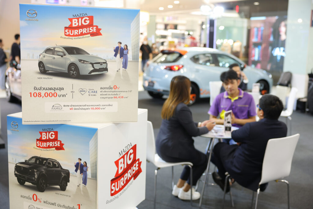 Mazda Expo ณ ศูนย์การค้า แฟชั่น ไอส์แลนด์ (บริเวณ เซ็นเตอร์คอร์ท ชั้น1) ระหว่างวันที่ 27 ก.ย. 67 – 6 ต.ค. 67 และ ระหว่างวันที่ 16-21 ต.ค. 67 ณ ศูนย์การค้า เซ็นทรัล เวสต์เกต มอบส่วนลดสูงสุด 200,000 บาท* หรือ ดอกเบี้ยต่ำสุด 0% นานสูงสุด 72 เดือน พร้อมฟรีประกันภัยชั้นหนึ่ง และเมื่อจองรถมาสด้าในงาน รับฟรี หูฟังไร้สาย JBL Under Armour Streak มูลค่า 2,990*บาท* และลูกค้าที่จองมาสด้า6 รับฟรีลำโพงบลูทูธ BOSE SOUNDLINK COLOR II มูลค่า 5,900 บาท* นอกจากนี้ เจ้าของรถมาสด้าและครอบครัว ยังได้รับสิทธิพิเศษ เมื่อออกรถใหม่ รับฟรี บัตรน้ำมันมูลค่าสูงสุด 30,000 บาท* หรือ เมื่อออกรถมาสด้า6 รับส่วนลดพิเศษเพิ่มเติม*