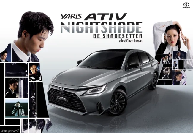 บริษัท โตโยต้า มอเตอร์ ประเทศไทย จำกัด ต่อยอดความสำเร็จของรถยนต์รุ่นพิเศษของ Yaris ATIV รถยนต์ซีดานที่เป็นที่ชื่นชอบของทุกคน ซี่งได้รับการตอบรับเป็นอย่างดีจากลูกค้าชาวไทยมาโดยตลอด การันตีด้วยยอดขายสะสมตั้งแต่เปิดตัวที่กว่า 242,000 คัน (ข้อมูลตั้งแต่ พ.ศ. 2560 – เดือนกันยายน พ.ศ. 2567) และยอดขายสูงสุดอันดับหนึ่งรถยนต์กลุ่มอีโคคาร์ ปีพ.ศ. 2566 กว่า 58,000 คัน (ข้อมูลยอดขายเดือนมกราคม – เดือนธันวาคม พ.ศ. 2566) ด้วยการแนะนำ Yaris ATIV NIGHTSHADE รุ่นพิเศษ Special Edition เพื่อเพิ่มตัวเลือกสำหรับลูกค้าที่ชื่นชอบในความพรีเมียมและสปอร์ต กับการออกแบบใหม่สไตล์ Premium & Sporty ภายนอกโฉบเฉี่ยวยิ่งขึ้นด้วยหลังคาดำ กระจกมองข้างสีดำเงาพร้อมไฟเลี้ยว สปอย์เลอร์หลังสีดำเงา ออกแบบให้ดูลงตัวกับล้ออัลลอยปัดเงาสีโครมดำ ตกแต่งห้องโดยสารภายในให้ทันสมัยยิ่งขึ้น ด้วยเบาะนั่งหนังแท้และหนังสังเคราะห์สีดำ ตกแต่งด้วยด้ายเทา กับทางเลือกสีภายนอกสีใหม่ สีเทาพร้อมหลังคาดำ Cement Gray with Black Roof และสีขาวพร้อมหลังคาดำ Platinum White Pearl with Black Roof มาพร้อมกับอุปกรณ์อำนวยความสะดวกมากมาย อาทิ หน้าจอสัมผัสขนาด 9 นิ้ว รองรับ Apple CarPlay และ Android Auto ช่องปรับอากาศสำหรับผู้โดยสารด้านหลัง กล้องมองรอบคัน และมั่นใจได้สูงสุดด้วยอุปกรณ์ความปลอดภัยมาตรฐานและเทคโนโลยี Toyota Safety Sense