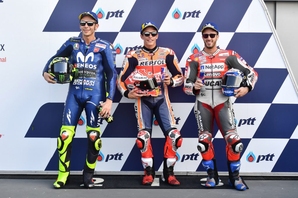 ‘มาร์ค มาร์เกซ’ (Marc Marquez) จากทีม ‘เรปโซล ฮอนด้า’ (Repsol Honda Team) ได้ออกตัวจากตำแหน่งหัวแถว หรือ Pole Position ในช่วงบ่ายของวัน และทะยานขึ้นเป็นผู้นำฝูงหลังผ่านการแข่งขันรอบแรก โดยครองตำแหน่งผู้นำในช่วง 4 รอบแรกของการแข่งขันก่อนที่ ‘วาเลนติโน่ รอสซี่’ (Valentino Rossi) นักบิดทีม ‘มูฟวี่สตาร์ ยามาฮ่า โมโตจีพี’ (Movistar Yamaha MotoGP) จะเบียดแซงขึ้นมาเป็นผู้นำและรักษาตำแหน่งผู้นำไว้ได้ถึง 6 รอบสนาม จากนั้น ‘อันเดรีย โดวิซิโอโซ’ (Andrea Dovizioso) นักบิดทีมดูคาติ (Ducati Team) ได้จังหวะเบียดแซงขึ้นมาเป็นผู้นำและพยายามรักษาระยะห่างด้วยการทำเวลาต่อรอบที่เร็วและควบคุมการขับขี่อย่างมีประสิทธิภาพ จากนั้นมาร์เกซก็ไล่จี้ขึ้นมาและขับเคี่ยวกันอย่างสูสี ผลัดกันนำผลัดกันแซงในช่วง 2-3 รอบสุดท้ายให้ลุ้นระทึกอย่างน่าตื่นเต้น ก่อนที่มาร์เกซจะเบียดแซงหน้าในโค้งสุดท้ายจนคว้าแชมป์ได้สำเร็จ โดยเฉือนเอาชนะ ‘โดวิซิโอโซ’ ไปเพียง 0.115 วินาที ขณะที่อันดับ 3 เป็นของ ‘มาเวอริค บีญาเลส’ (Maverick Viñales) นักบิดทีม ‘มูฟวี่สตาร์ ยามาฮ่า โมโตจีพี’ ทำให้ตำแหน่ง 3 อันดับแรกเป็นของค่ายรถต่างกัน 3 ค่าย ด้าน ‘รอสซี่’ คว้าอันดับ 4 ตามมาด้วย ‘โยฮันน์ ซาร์โก’ (Johann Zarco) จากทีม ‘มอนสเตอร์ ยามาฮ่า เทค 3’ (Monster Yamaha Tech 3) ในอันดับที่ 5 โดยเป็นนักบิดจากทีมอิสระคนแรกที่เข้าเส้นชัย (First Independent Rider), ‘อเล็กซ์ รินส์’ (Alex Rins) จากทีม ‘ซูซูกิ เอ็กซ์สตาร์’ (Team SUZUKI ECSTAR) อันดับ 6, ‘คาล ครัทช์โลว์’ (Cal Crutchlow) จากทีม ‘แอลซีอาร์ ฮอนด้า’(LCR Honda) ปาดแซงหน้านักบิดที่ทำเวลาเร็วประจำสนาม ‘อัลวาโร เบาติสตา’ (Alvaro Bautista) จากทีม ‘แองเจิล เนียโต้’ (Angel Nieto Team) ขึ้นครองอันดับเจ็ด ในขณะที่ ‘ดานิโล่ เปตรุซซี่’ (Danilo Petrucci) จากทีม ‘อัลมา พรามัค เรซซิ่ง’ (Alma Pramac Racing) เข้าเส้นชัยเป็นอันดับ 9 ตามมาด้วย ‘แจ็ค มิลเลอร์’ (Jack Miller) นักบิดเพื่อนร่วมทีม ที่ปิดท้ายติดอันดับ 1 ใน 10 คนแรกที่เข้าเส้นชัย