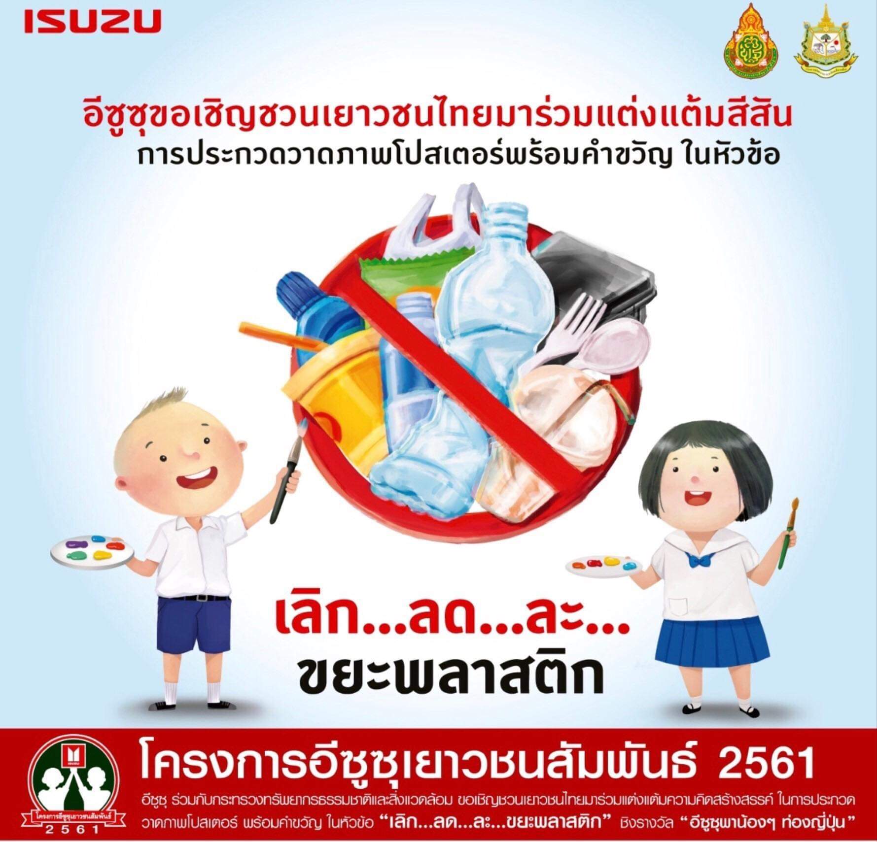 กลุ่มตรีเพชร โดย นายโทชิอากิ มาเอคาวะ กรรมการผู้จัดการ บริษัท ตรีเพชรอีซูซุเซลส์ จำกัด พร้อมด้วย ดร. วิจารย์ สิมาฉายา ปลัดกระทรวงทรัพยากรธรรมชาติและสิ่งแวดล้อม และคุณวัลลา เรือนไชยวงศ์ ผู้อำนวยการสำนักพัฒนากิจกรรมนักเรียน สำนักงานคณะกรรมการการศึกษาขั้นพื้นฐาน กระทรวงศึกษาธิการ ร่วมแถลงข่าวเปิดโครงการ “อีซูซุเยาวชนสัมพันธ์ 2561” การประกวดวาดภาพโปสเตอร์พร้อมคำขวัญสำหรับระดับมัธยมศึกษาตอนต้น-ปลาย ในหัวข้อรอบคัดเลือก “เลิก…ลด…ละ…ขยะพลาสติก” ลุ้นชิงรางวัล “อีซูซุพาน้องๆ ท่องญี่ปุ่น” พร้อมโล่ประกาศเกียรติคุณ และทุนการศึกษามากมาย
