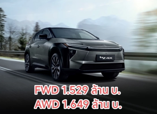 โตโยต้า ประกาศราคาจำหน่าย NEW bZ4X รุ่น FWD 1.529 ล้านและรุ่น AWD 1.649 ล้านบาท