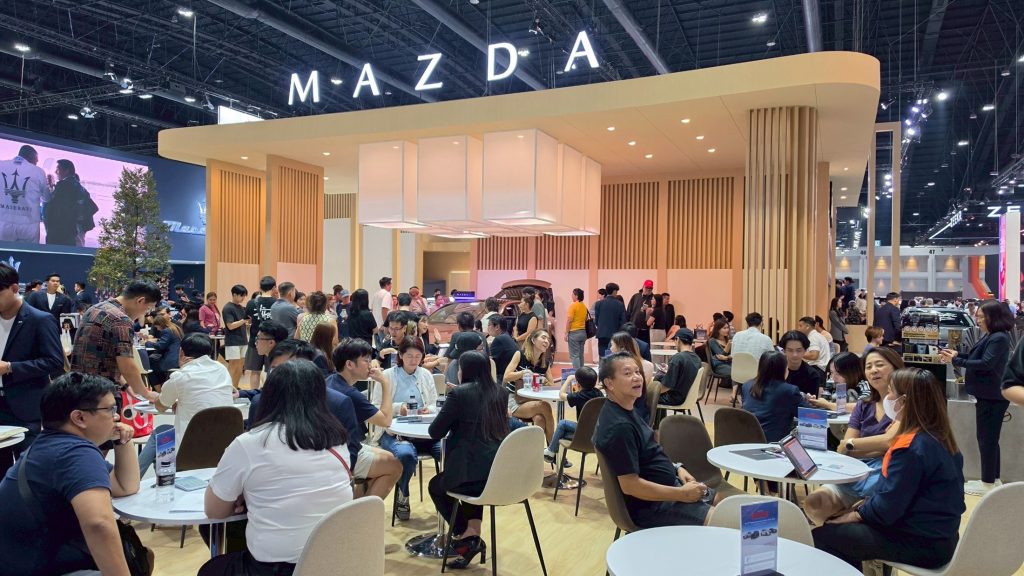 สำหรับงานมอเตอร์ โชว์ ครั้งนี้ รถยนต์ทุกรุ่นจากมาสด้ายังคงได้รับการตอบรับเป็นอย่างดีเช่นเคย ไม่ว่าจะเป็นรถยนต์นั่ง Mazda2, Mazda3, รถยนต์ครอสโอเวอร์เอสยูวี Mazda CX-3, CX-30, CX-5, CX-8 และ BT-50 ในขณะที่รุ่นอื่นๆ ก็มีผู้เข้าชมอย่างต่อเนื่องตลอดทั้งวัน ทำให้ในงานมอเตอร์ โชว์ ครั้งนี้ มาสด้ามียอดจองถึง 2,100 คัน หลังจากผ่านมาเพียงแค่เจ็ดวัน และสำหรับครอสโอเวอร์เอสยูวี The All-Electric Mazda6e ที่นำมาจัดแสดงเป็นครั้งแรกในอาเซียน ASEAN PREMIERE ในงานนี้ ก็ได้รับความสนใจเป็นอย่างมากเช่นกัน ซึ่งมาสด้ามีแผนที่จะเปิดตัวอย่างเป็นทางการภายในปลายปี 2569 นี้