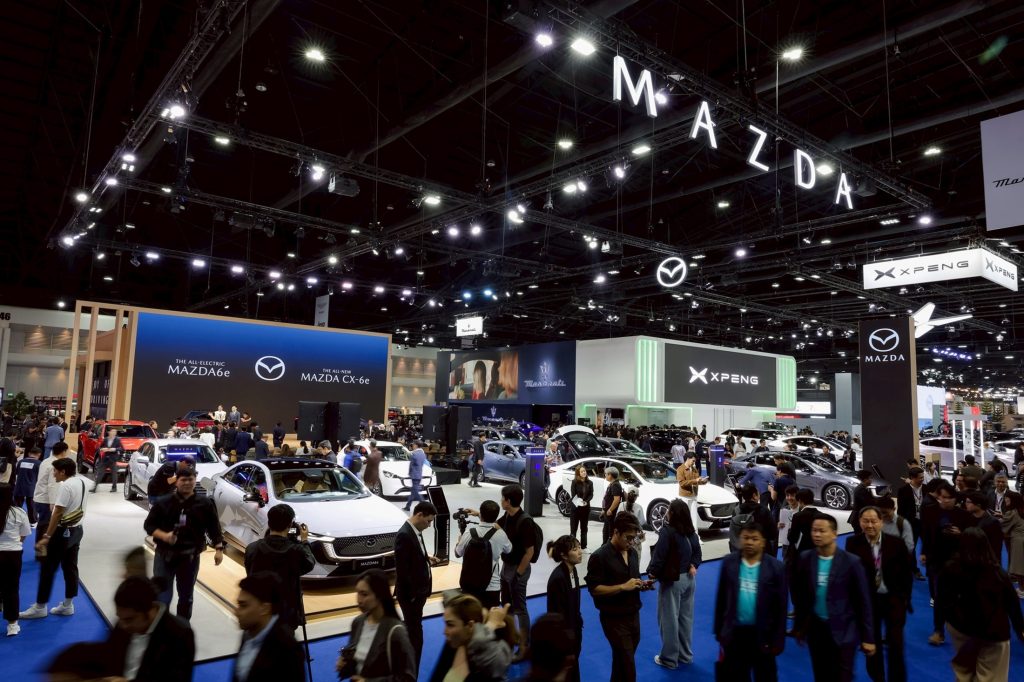 มาสด้าตอกย้ำความสำเร็จของก้าวแรกในการก้าวเข้ายุคยานยนต์ไฟฟ้าอย่างเต็มรูปแบบในประเทศไทย The All-Electric Mazda6e สร้างกระแสตอบรับสุดร้อนแรงส่งผลให้ยอดจองในงานมอเตอร์โชว์รวมทุกรุ่นทะลุเกิน 2,100 คัน หลังผ่านครึ่งทางของงานฯ พร้อมเปิดราคาจำหน่ายสุดเร้าใจเริ่มต้นเพียง 1,169,000 บาท ในขณะที่ยนตรกรรมครอสโอเวอร์เอสยูวีไฟฟ้ายุคใหม่ The All-New Mazda CX-6e ที่นำมาจัดแสดงเป็นครั้งแรกในอาเซียน และมีแผนที่จะเปิดตัวภายในปีนี้ ก็มีลูกค้าเข้ามาชมอย่างหนาแน่นตลอดทั้งวัน ซึ่งมาสด้าได้จัดแคมเปญมอบข้อเสนอพิเศษมากมายสำหรับรถไฟฟ้าและรถยนต์มาสด้าทุกรุ่น และได้รับความสนใจจากลูกค้าอย่างเนืองแน่นตลอดทั้งวัน ผู้สนใจสามารถเข้าชมยนตรกรรมคันจริงได้ที่งาน มอเตอร์ โชว์ อิมแพค เมืองทองธานี หรือศึกษารายละเอียดเพิ่มเติมได้ที่ www.mazda.co.th