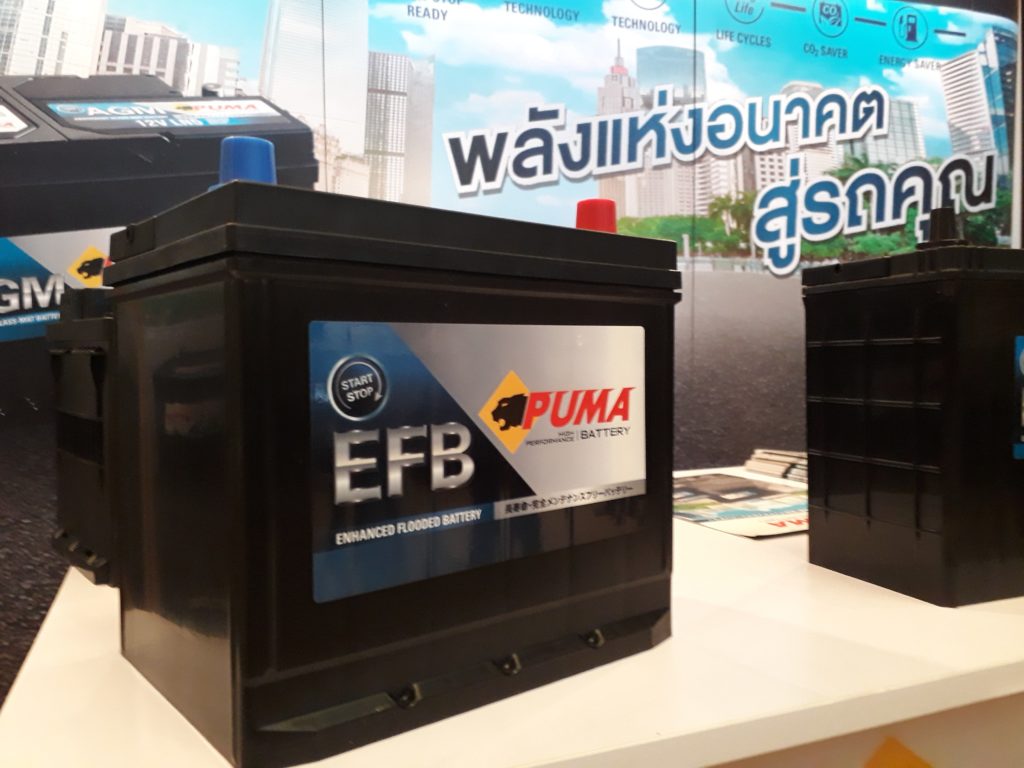 PUMA Start Stop จะมี 2 ประเภท คือPUMA EFB ใช้สำหรับรถยนต์ ที่วางแบตเตอรี่ไว้ในห้องเครื่องที่มีความร้อนสูง โดยมากใช้กับรถยนต์ญี่ปุ่น และ ปิคอัพPUMA AGM ใช้สำหรับรถยุโรป ที่ติดตั้งแบตเตอรี่ไว้ภายในห้องโดยสาร หรือ ช่องสำภาระ และ รถที่มีการติดตั้งระบบ Start Stop แบบ Advance ซึ่งจะทำให้แบตเตอรี่ ต้องรับภาระหนักกว่าแบบปรกติ ซึ่ง AGM แบตเตอรี่จะสามารถคายประจุไฟฟ้าได้ยาวนานกว่า EFB และมีอายุใช้งานยาวนานกว่า EFB