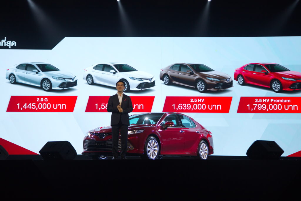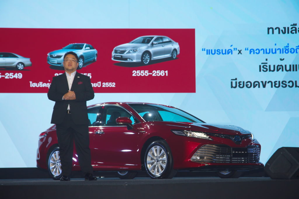 นายมิจิโนบุ ซึงาตะ กล่าวต่อไปว่า ตัวแทนจำหน่ายโตโยต้าทั่วประเทศ พร้อมให้การดูแลลูกค้าทุกท่าน และจะมอบความพึงพอใจ ความภาคภูมิใจในการเป็นเจ้าของ รวมไปถึงความรู้สึกสบายใจตลอดระยะเวลาที่ครอบครองรถรุ่นนี้ สุดท้ายนี้ ผมขอขอบคุณรัฐบาลไทย ที่ให้การสนับสนุนการส่งเสริมใช้พลังงานทางเลือกอย่างต่อเนื่อง ทำให้คนไทยสามารถเป็นเจ้าของรถยนต์ที่มีเทคโนโลยีขั้นสูงอย่าง คัมรีใหม่ ได้ในราคาที่เหมาะสม และผมยินดีที่จะแจ้งให้ทุกท่านทราบถึงความคืบหน้าในการผลิตแบตเตอรีภายในประเทศ เราจะเริ่มต้นการผลิตในกลางปี 2562 ที่โรงงานเกตุเวย์ จังหวัดฉะเชิงเทรา เพื่อตอบสนองนโยบายของภาครัฐ