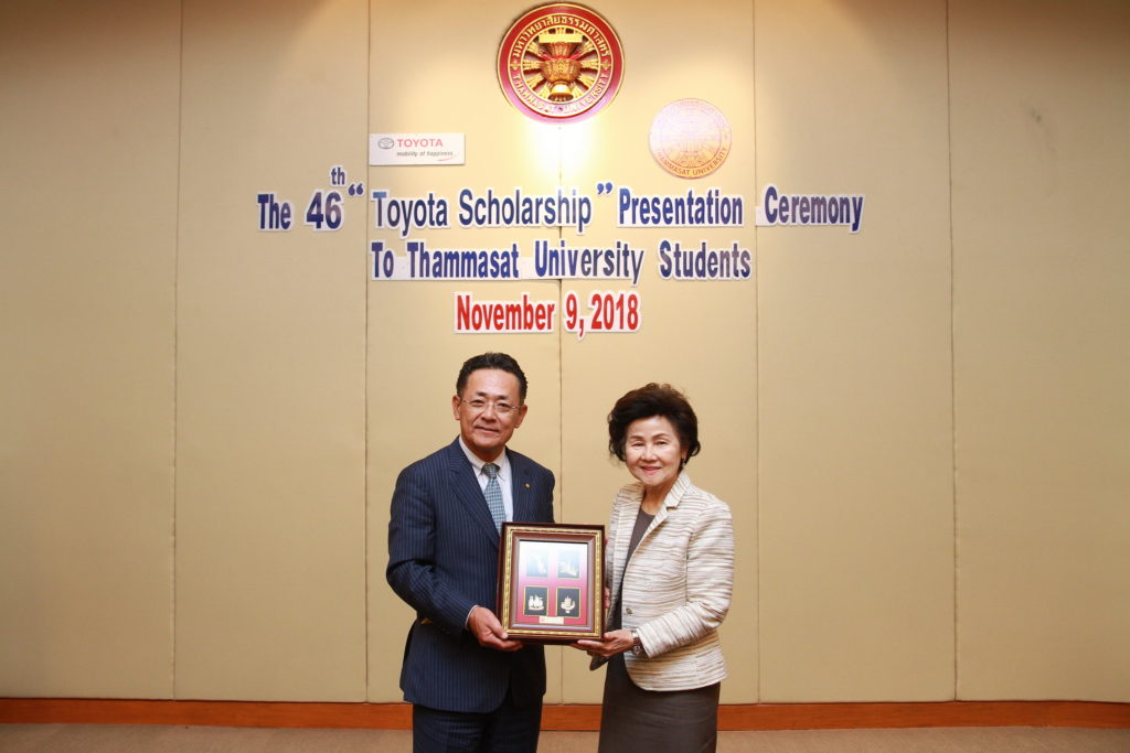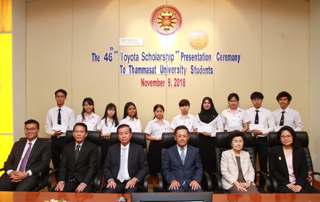 โดยโตโยต้าได้มอบทุนสนับสนุนนักศึกษามหาวิทยาลัยธรรมศาสตร์มาอย่างต่อเนื่องตั้งแต่ปี พ.ศ. 2516 จนถึงปัจจุบัน ซึ่งการมอบทุนในครั้งนี้ นับเป็นครั้งที่ 46 โดยมีนักศึกษามหาวิทยาลัยธรรมศาสตร์ได้รับทุนแล้วรวมทั้งสิ้น 962 ทุน คิดเป็นมูลค่าทั้งสิ้น 16,336,800 บาท ในปีนี้มีนักศึกษาเข้ารับทุนการศึกษาจำนวน 12 ทุน รวมเป็นมูลค่า 937,400 บาท