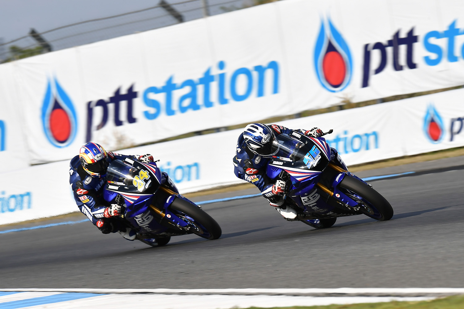 อย่างไรก็ดี จากฟอร์มที่เหนือกว่าคู่แข่งทำให้ คู่หูยามาฮ่าอย่าง เดชา และ รัฐพงษ์ ฉีกหนีคู่แข่งออกไปกว่า 5 วินาทีในช่วงครึ่งทางการแข่งขัน ขณะที่ เขมินท์ ที่ไล่บดกับ ยูทิสทิร่า พลาดล้มอย่างน่าเสียดาย