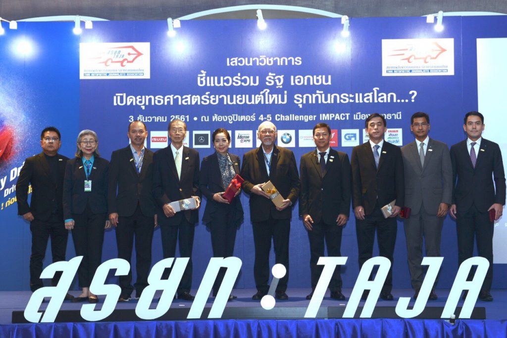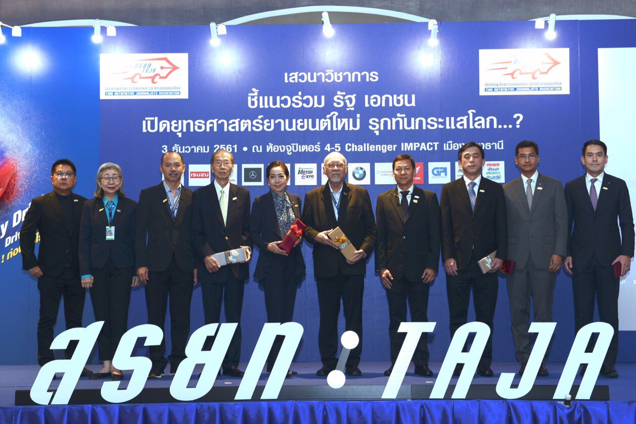 สมาคมผู้สื่อข่างรถยนต์และจักรยานยนต์ไทย (สรยท.) หรือ (Thailand Automotive Journalists Association : TAJA) จัดเสวนาทางวิชาการหัวข้อ “ชี้แนวร่วมรัฐเอกชนเปิดยุทธศาสตร์ยานยนต์ใหม่รุกทันกระแสโลก…?”เมื่อวันที่ 3 ธันวาคม 2561 ภายในงานมหกรรมยานยนต์ หรือมอเตอร์เอ็กซ์โป 2018 โดยมีผู้บริหารจากบริษัทรถยนต์ชั้นนำและองค์กรภาคเอกชนมาร่วมแสดงความคิดเห็นเทรนด์ของอุตสาหกรรมยานยนต์ที่จะเกิดขึ้นในอนาคต