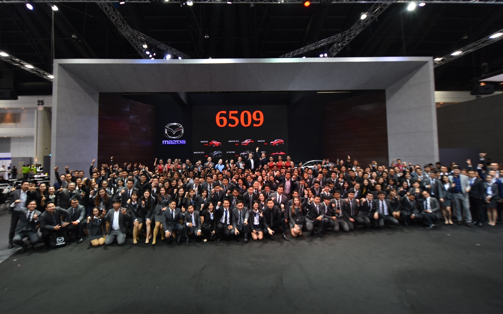 สรุปยอดจองรถมาสด้าในงานมอเตอร์ เอ็กซ์โป รวมทั้งสิ้น 6,509 คัน แบ่งออกเป็นมาสด้า2 ยอดจองสูงถึง 4,370 คัน ตามมาด้วยมาสด้า CX-5 จำนวน 985 คัน มาสด้า3 จำนวน 568 คัน มาสด้า CX-3 จำนวน 367 คัน และรถปิกอัพมาสด้า บีที-50 โปร ธันเดอร์ใหม่ จำนวน 213 คัน และรถสปอร์ตโรดสเตอร์มาสด้า MX-5 จำนวน 6 คัน ที่สำคัญลูกค้าที่จองในงานยังได้รับประกันชั้น 1 ฟรี (Mazda Premium Insurance) พร้อม