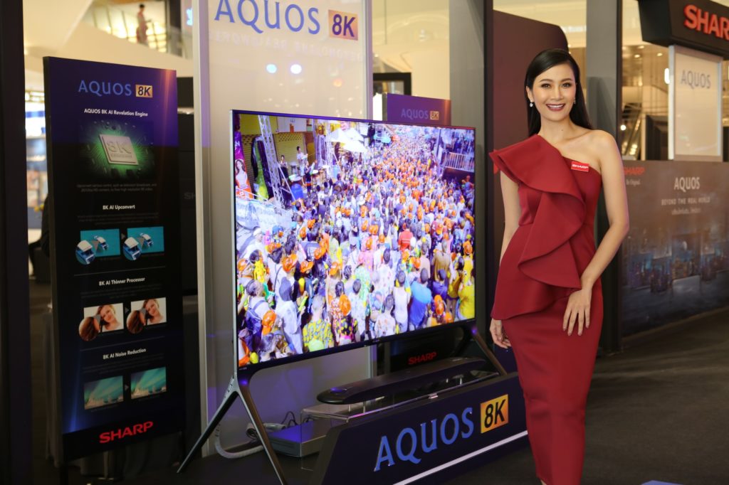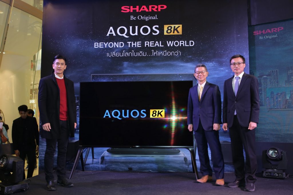 “อควอส 8K” (AQUOS 8K) ครั้งแรกของโลกกับเทคโนโลยีชาร์ป 8K ทีวีรุ่นเรือธงในตระกูล “อควอส” ที่มาพร้อมคอนเซปท์ BEYOND THE REAL WORLD ให้เหนือกว่า ด้วยการปฏิวัติครั้งยิ่งใหญ่ของเทคโนโลยีทีวีที่ล้ำหน้าสุดของยุคนี้ที่คิดค้นและพัฒนาโดยชาร์ป ที่จะทำให้ผู้ชมได้ อิ่มเอมไปกับการรับชมภาพผ่านจอที่สวยสดงดงาม ด้วยขีดสุดของสีสัน ความคมชัด และรายละเอียดที่สมจริง สะกดทุกสายตา ด้วยความละเอียดสูงถึง 7680 x 4320 ของเทคโนโลยีทีวีที่ทันสมัยที่สุดในยุคนี้ที่คิดค้นและพัฒนาโดยชาร์ป ซึ่งจะทำให้ผู้ชมได้ดื่มด่ำกับการรับชมผ่านจอแสดงผล IGZO* ด้วยสีที่ดีที่สุด พร้อมกับความคมชัด และรายละเอียดที่สมจริงเสมือนการมองเห็นด้วยตามนุษย์ สัมผัสที่สุดแห่งรายละเอียดของจอภาพ LCD แบบ High-transmittance ระดับ 8K ที่ให้ความละเอียดถึง 33 ล้านพิกเซลสูงกว่าจอ FULL HD ถึง 16 เท่า ขับเคลื่อนด้วยความเร็วอันเหนือชั้น 120Hz จึงสามารถส่งข้อมูลภาพขนาดใหญ่ในอัตรา 120 ภาพต่อวินาที และเทคโนโลยีการปรับความสว่างที่สามารถวิเคราะห์สัญญาณภาพ และตรวจจับความสว่างของภาพได้แบบอัตโนมัติ ได้ดีขึ้นถึง 13 เท่าเมื่อเทียบกับจอทีวีในรุ่นเดิม จึงให้ภาพที่มีสีสันสดใส มีชีวิตชีวาด้วยขอบเขตสีที่กว้างขึ้น ให้ความรู้สึกถึงความลึกของภาพได้อย่างเด่นชัด คมชัดสมจริงกว่าที่เคยเป็นมา โดยมาพร้อมระบบเสียง Eilex พร้อม Dolby ATMOS ให้เสียงทรงพลัง และเพิ่มระยะการรับฟังเสียงที่ดีที่สุด เพื่อสร้างบรรยากาศในการรับชมทีวีให้สมบูรณ์แบบยิ่งขึ้น โดย “อควอส 8K” ทีวีเป็นผลิตภัณฑ์เรือธงในตระกูล อควอส ทีวีซีรีส์ มีให้เลือก 3 ขนาด ได้แก่ 80 นิ้ว ราคา 599,990 บาท 70 นิ้ว ราคา 299,990 และ 60 นิ้ว ราคา 199,990 บาท
