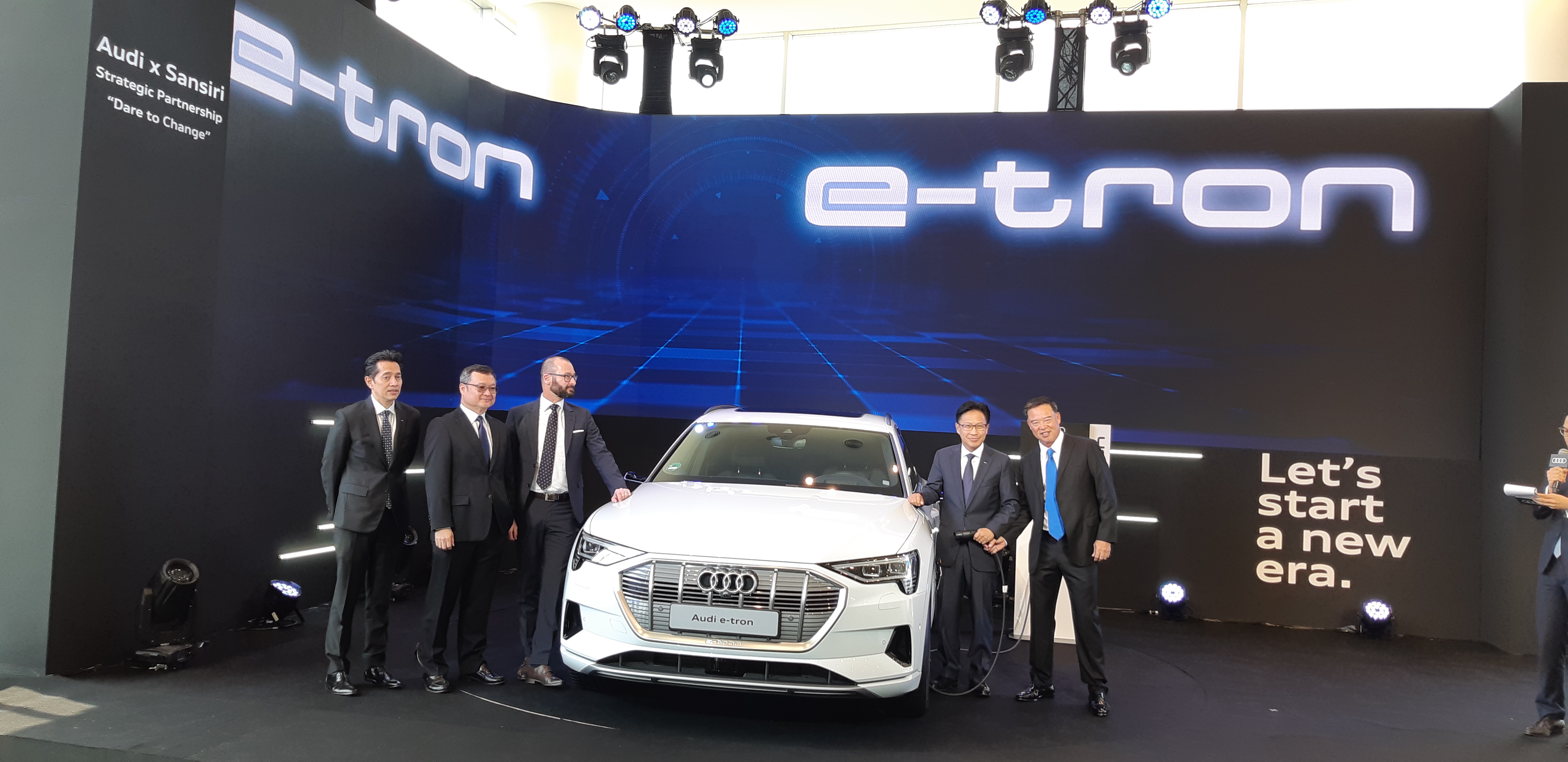 นายกฤษฎา ล่ำซำ ประธานกรรมการและประธานกรรมการบริหาร Audi Thailand เผยว่า ภายใต้การสนับสนุนของ AUDI AG ทางเรายังคงนโยบายกลยุทธ์เชิงรุก ซึ่งการเปิดตัว Audi e – tron : Audi’s First Luxury Pure Electric Car ยนตกรรมเอสยูวีพรีเมียมพลังงานไฟฟ้า 100 % ที่มีสมรรถนะสูง สะท้อนเอกลักษณ์ ความโดดเด่น และ ดีเอ็นเอ Audi ที่เรียกว่า Vorsprung Durch Technik ครั้งแรกในประเทศไทย จะสร้างปรากฏการณ์สำคัญครั้งใหม่ โดยเฉพาะในกลุ่มยนตรกรรมพรีเมียม ในด้านสมรรถนะ ดีไซน์ และความก้าวล้ำแห่งเทคโนโลยี ที่ตอบโจทย์ไลฟ์สไตล์ และความต้องการของลูกค้า ที่รอคอยการมาของ Audi e-tron นับเป็นจุดเปลี่ยนที่สำคัญส่วนหนึ่งในการพัฒนาและขับเคลื่อนให้ประเทศไทยเป็น smart city ซึ่งวันนี้เราพร้อมสนับสนุน และกล้าที่จะเปลี่ยนเพื่อความยั่งยืน และจากนโยบายด้านความยั่งยืนที่กลายเป็นรูปธรรม ด้วยการนำยนตรกรรมพลังงานไฟฟ้าเข้าสู่ตลาดประเทศไทยอย่างรวดเร็ว ทำให้เกิดความร่วมมือทางกลยุทธ์ข้ามอุตสาหกรรมครั้งประวัติศาสตร์ กับบริษัทยักษ์ใหญ่ด้านอสังหาริมทรัพย์ นั่นคือ บริษัท แสนสริ จำกัด (มหาชน) ซึ่งมีนโยบายและวิสัยทัศน์เรื่องความยั่งยืนและความรับผิดชอบต่อสังคมสิ่งแวดล้อมมาอย่างต่อเนื่อง ในพันธกิจ “ Dare to Change” เพื่อร่วมกันยกระดับ Green Ecosytem โดยทางแสนสิริ เริ่มนำร่องจากการเลือก Audi e-tron เป็นส่วนหนึ่งที่ใช้ภายในองค์กร