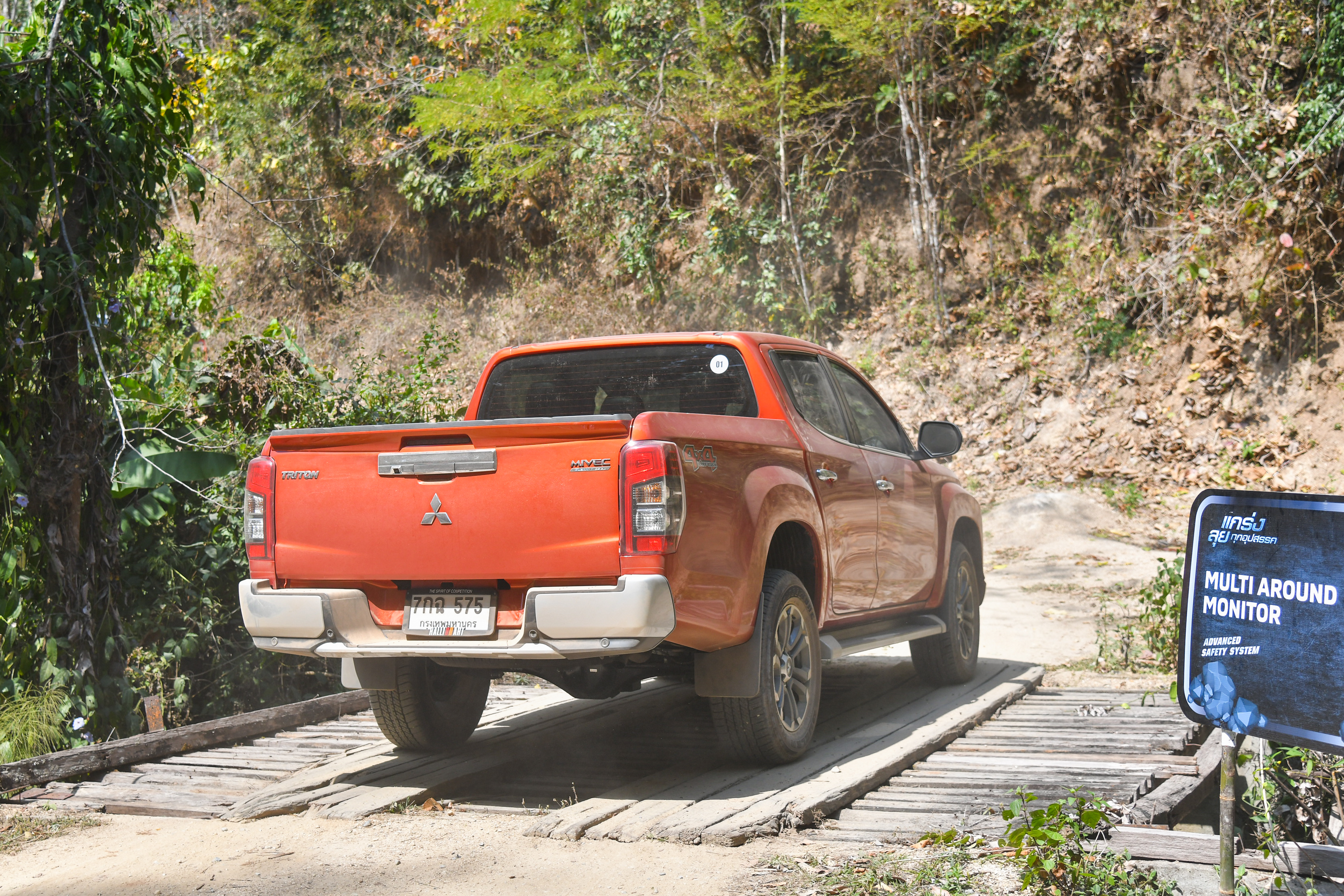 แม้สภาพถนนในการขับทดสอบจะทุรกันดาร แต่สำหรับมิตซูบิชิ ไทรทันใหม่ซึ่งมีความสูงใต้ท้องรถถึง 220 มม. และด้วยล้อขนาดใหญ่ 18 นิ้วจึงขับฝ่าอุปสรรคได้อย่างสบาย โดยสามารถขับไต่สิ่งกีดขวางได้ถึง31 องศา (Approach Angle) หรือ ลาดต่ำลงทำมุม 23 องศา (Departure Angle) และสามารถขับคร่อมทำมุม 25 องศา (Breakover Angle)