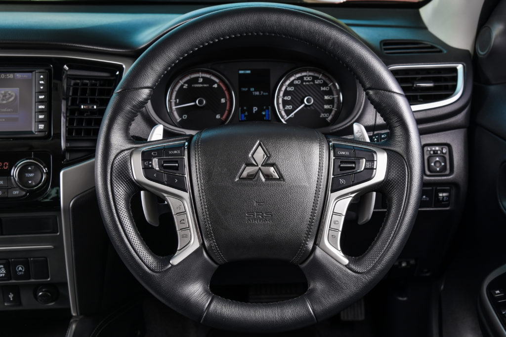 ระบบความปลอดภัยที่ผมชอบที่สุดระหว่างการทดสอบคือ ระบบกล้องมองภาพรอบคันที่ใช้กล้อง 4 ตัวจับภาพรอบคันพร้อมภาพมุมสูงที่แสดงสิ่งกีดขวางรอบคัน และเซ็นเซอร์กะระยะจอด เพื่ออำนวยความสะดวกในการจอดรถ มิตซูบิชิ ไทรทัน ใหม่ ครบครันด้วยระบบความปลอดภัยอีกมากซึ่งรวมไปถึง ระบบปรับระดับไฟสูง-ต่ำอัตโนมัติ