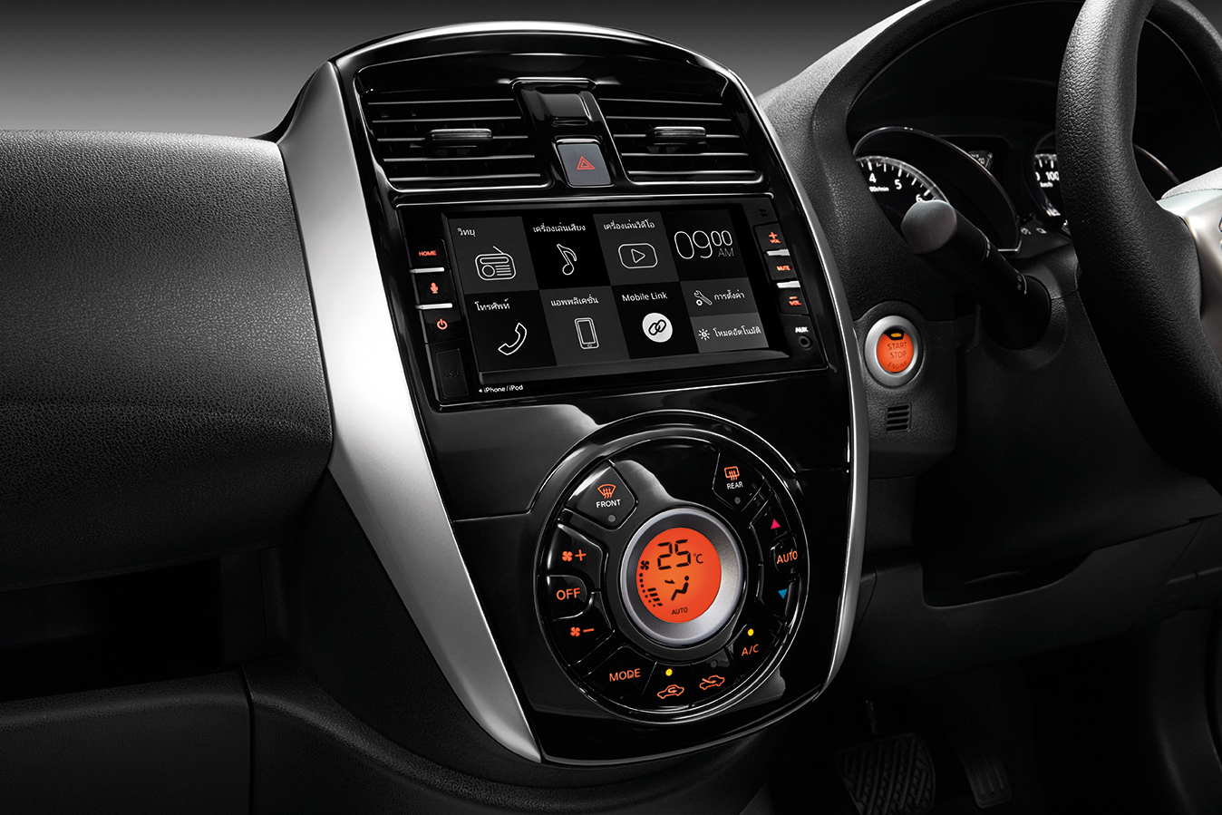 โดย อัลเมร่า รุ่นปี 2019 ใหม่ ยังมาพร้อม Display Audio แบบอสัมผัสขนาด7 นิ้ว มีฟังก์ชั่นการเชื่อมต่อบลูทูธ การเชื่อมต่อกับแอปเปิลคาร์เพลย์ และจอแสดงภาพด้านหลังหรือ Rear View Monitor เพื่อความสะดวกในการจอดรถ ช่วยให้ผู้ขับขี่มองเห็นสิ่งที่อยู่ข้างหลังพวกเขาโดยแสดงภาพขณะถอยไว้ที่หน้าจอโดยไม่จำเป็นต้องหันหลังไปมอง