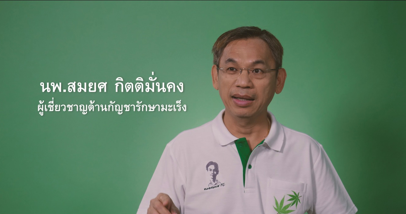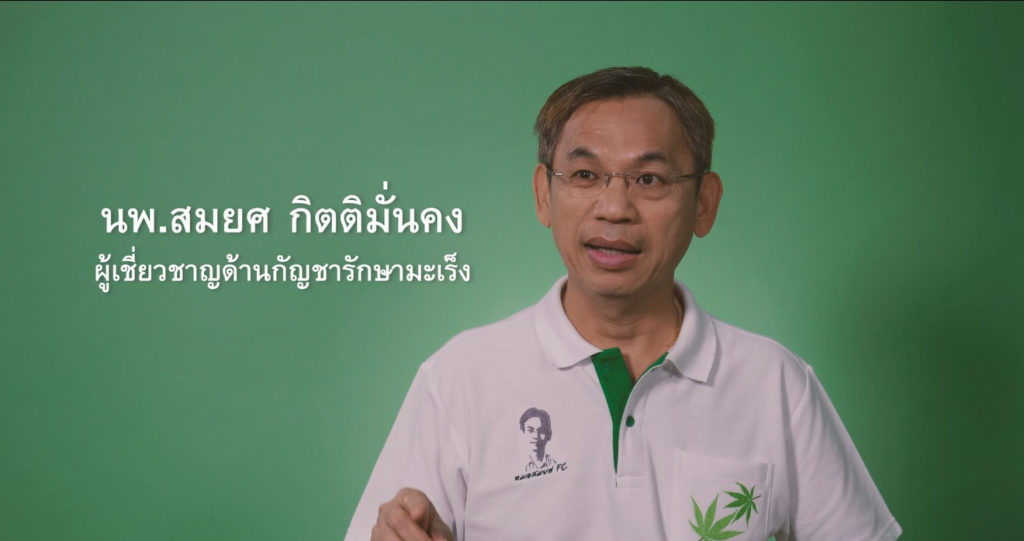 นพ.สมยศ กิตติมั่นคง ผู้เชี่ยวชาญด้านการรักษามะเร็งกล่าวว่า เมื่อก่อนเราเคยคิดว่ากัญชาเป็นยาเสพติด พอเราศึกษามากขึ้นจึงรู้ว่าตัวกัญชาไม่ได้มีฤทธิ์เสพติดเหมือนที่เคยพูดกันมา ที่สำคัญสมัยสมเด็จพระนารายณ์มีเขียนเอาไว้ชัดเจนว่ายาหลายๆ ตำรับมีการนำกัญชามาเป็นส่วนประกอบด้วย และผมบอกได้เลยว่าไม่เคยเห็นคนใช้กัญชาแล้วเกิดอาการคลุ้มคลั่งไปโดดตึกหรือโดดอะไรต่างๆ ในต่างประเทศก็ไม่เคยมีเหมือนกัน ดังนั้นยืนยันว่ากัญชาคือยารักษาโรคไม่ใช่ยาเสพติด ซึ่งหลายประเทศพิสูจน์มาแล้วจากงานวิจัย ผมว่าที่จริงเรายังก้าวช้าไปด้วย เพราะคนไข้เรากำลังทุกข์ทรมานเดือดร้อนแต่ยังต้องรอวิจัยอีก 5 ปีแล้วเมื่อไหร่จะได้ใช้