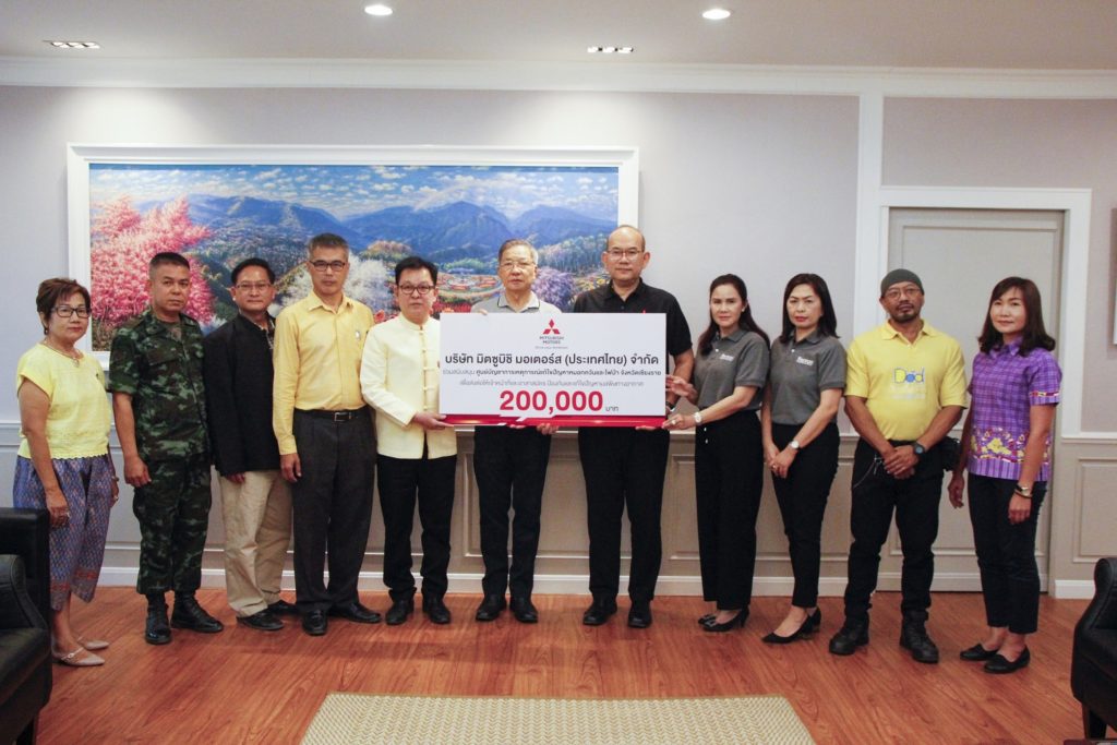 มิตซูบิชิ มอเตอร์ส ประเทศไทย โดย นายสาโรจน์มะอาจเลิศผู้ช่วยกรรมการผู้จัดการใหญ่สายงานขายในประเทศ ร่วมกับ บริษัทแสงชัยมอเตอร์เซลส์จำกัดบริษัทมิตซูเชียงใหม่จำกัด และ บริษัทมิตซูวชิระออโต้เซลส์เป็นผู้แทนส่งมอบเงินบริจาคจำนวน 200,000บาท ให้แก่ ให้แก่นายคมสันสุวรรณอัมพา รองผู้ว่าราชการจังหวัดเชียงใหม่รับมอบในนามศูนย์บัญชาการเหตุการณ์แก้ไขปัญหาหมอกควันและไฟป่าจังหวัดเชียงใหม่