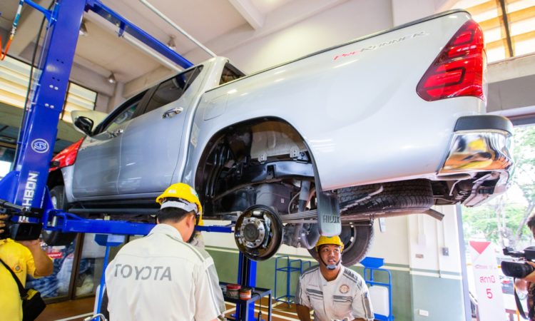 วิทยาลัยเทคโนโลยียานยนต์โตโยต้า เริ่มเปิดดำเนินการเรียนการสอนมาตั้งแต่ปีพ.ศ.2541สำหรับนักศึกษาระดับ ปวส. ในสาขาเทคนิคยานยนต์ สาขาธุรกิจการบริการยานยนต์ และสาขาเทคนิคซ่อมตัวถังและสีรถยนต์ เพื่อผลิตบุคลากรคุณภาพให้กับศูนย์บริการของผู้แทนจำหน่ายโตโยต้าทั่วประเทศ โดยฝึกสอนให้ความรู้เกี่ยวกับเทคโนโลยียานยนต์ของโตโยต้า เสริมด้วยความรู้ด้านการบริหารจัดการแบบโตโยต้า เพื่อให้มีทักษะกระบวนความคิดและการจัดการที่มีประสิทธิภาพมากยิ่งขึ้น โดยปัจจุบันมีนักศึกษาที่จบจากวิทยาลัยเทคโนโลยียานยนต์โตโยต้ารวมทั้งสิ้นกว่า 3,700 คน สร้างบุคลากรสายอาชีพช่างเทคนิคยานยนต์จำนวนมากให้กับอุตสาหกรรมยานยนต์ของประเทศไทย