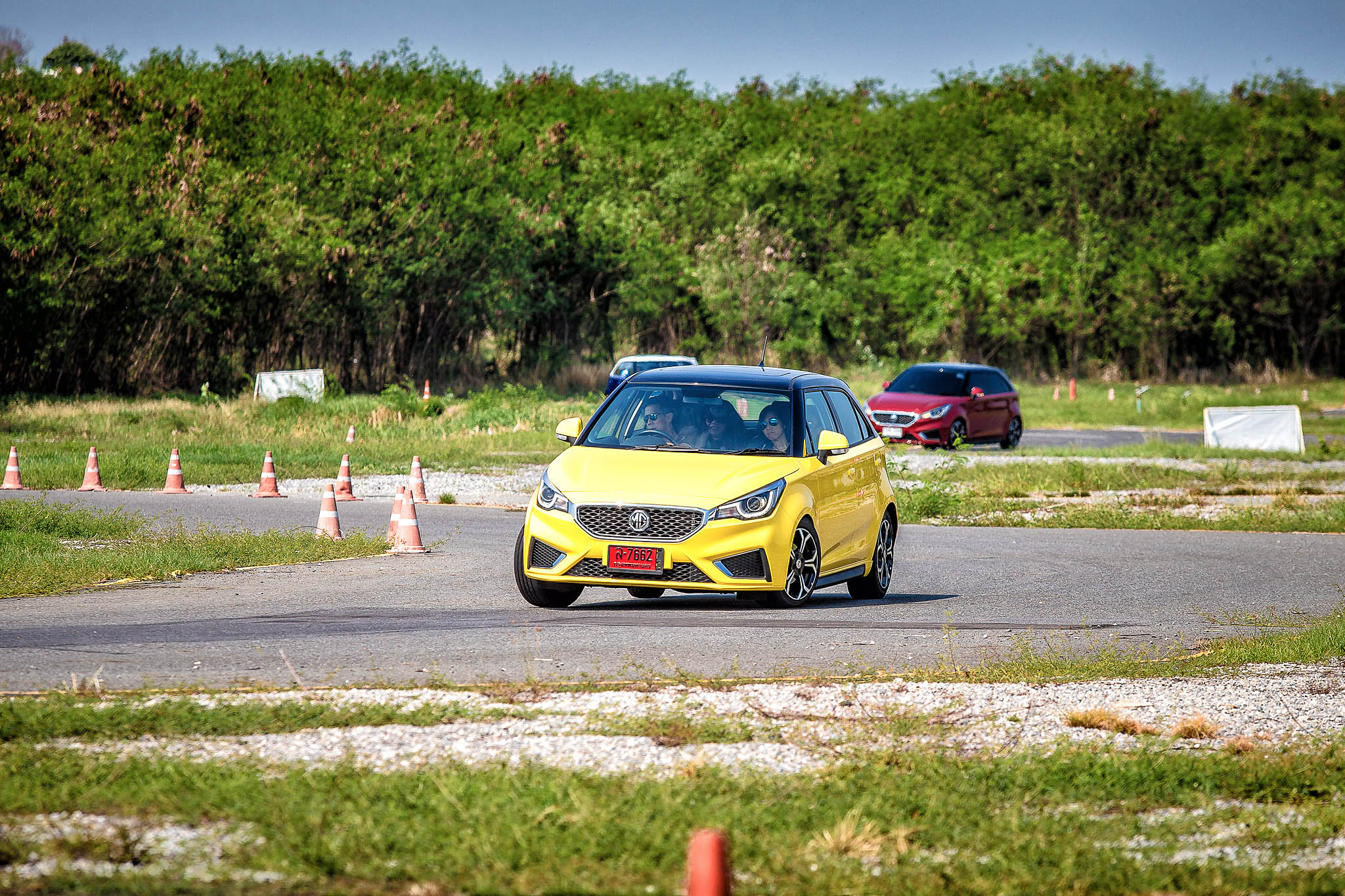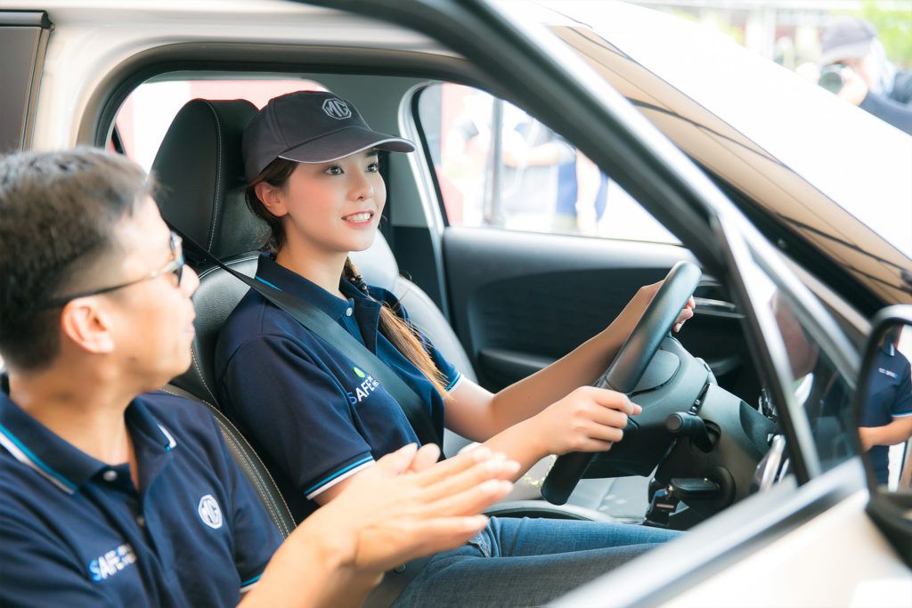 ในขณะที่ กิจกรรมช่วงบ่าย จะเน้นการฝึกปฏิบัติบนสนามทดสอบจำลองการขับขี่ อาทิ ฝึกหมุนพวงมาลัย การขับรถในทางโค้ง ทั้งในสภาวะปกติและการแก้ไขปัญหาเฉพาะหน้าในภาวะฉุกเฉิน พร้อมสัมผัสประสบการณ์การขับขี่ แบบสนามแข่งขันกับทีมฝึกสอนของเอ็มจี ซึ่งทำให้เห็นถึงความเชี่ยวชาญของทีมฝึกสอน(Instructor) และสมรรถนะของรถยนต์เอ็มจี ได้เป็นอย่างดี