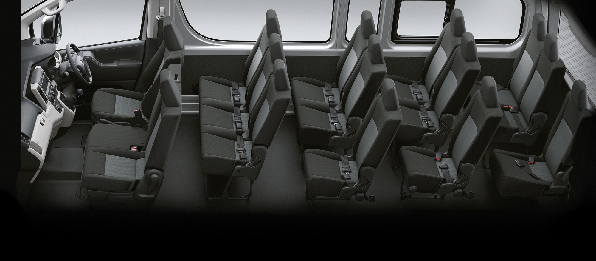 พื้นที่ห้องโดยสารกว้างขวาง สะดวกสบายด้วยเบาะโดยสาร 15 ที่นั่ง พร้อมทางออกฉุกเฉิน