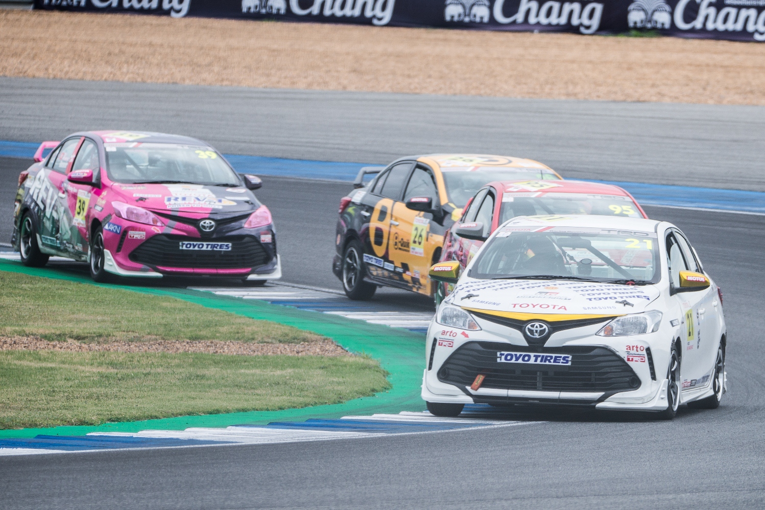 สนุกเร้าใจไปกับ “โคโรลล่า อัลติส วันเมคเรซ” ซึ่ง 3 อันดับแรกยังคงยึดตำแหน่งอย่างเหนียวแน่น โดยแชมป์ตกเป็นของ “โชคชัยจารุนงคราญ” หมายเลข 36 จากทีม TDEX Motul Nexzter Racing Team คว้าแชมป์ไปครอง โดยมี “พุทธมนต์ ธนะพาสุข” หมายเลข 96 ตามมาในอันดับ 2 และอันดับที่ 3 ตกเป็นของ “กฤษฎิ์ วสุรัตน์” หมายเลข 69