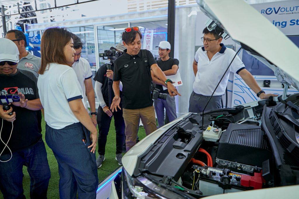 การทดสอบสมรรถนะของอัตราเร่ง และแรงบิดสูงสุดอย่างต่อเนื่อง ความสามารถของเทคโนโลยีe-Pedal ที่สามารถใช้ควบคุมความเร็วรถทั้งการเร่ง และเบรกด้วยคันเร่งเพียงอย่างเดียว ในสถานีการขับขี่แบบสลาลม ความเงียบภายในห้องโดยสารตลอดการเดินทาง รวมถึงการแลกเปลี่ยนข้อมูลด้านเทคนิคจากผู้เชี่ยวชาญด้านรถยนต์ไฟฟ้าของนิสสัน