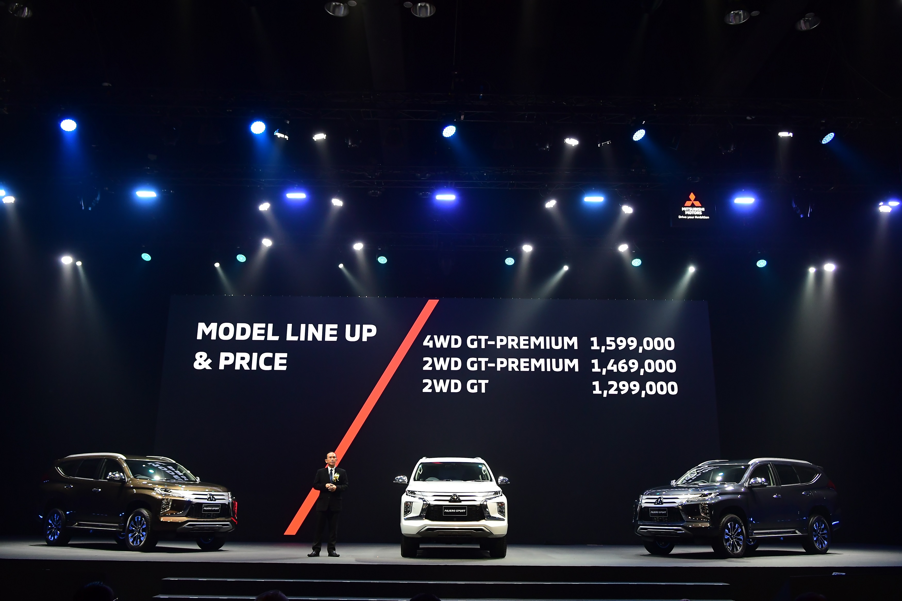 โดยมิตซูบิชิ ปาเจโร สปอร์ต ใหม่ มีจำหน่าย 3 รุ่นคือ รุ่น2WD GT ราคา 1.299 ล้านบาท รุ่น2WD GT PREMIUM ราคา 1.469 ล้านบาท และรุ่น 4WD GT PREMIUM ราคา 1.599 ล้านบาท