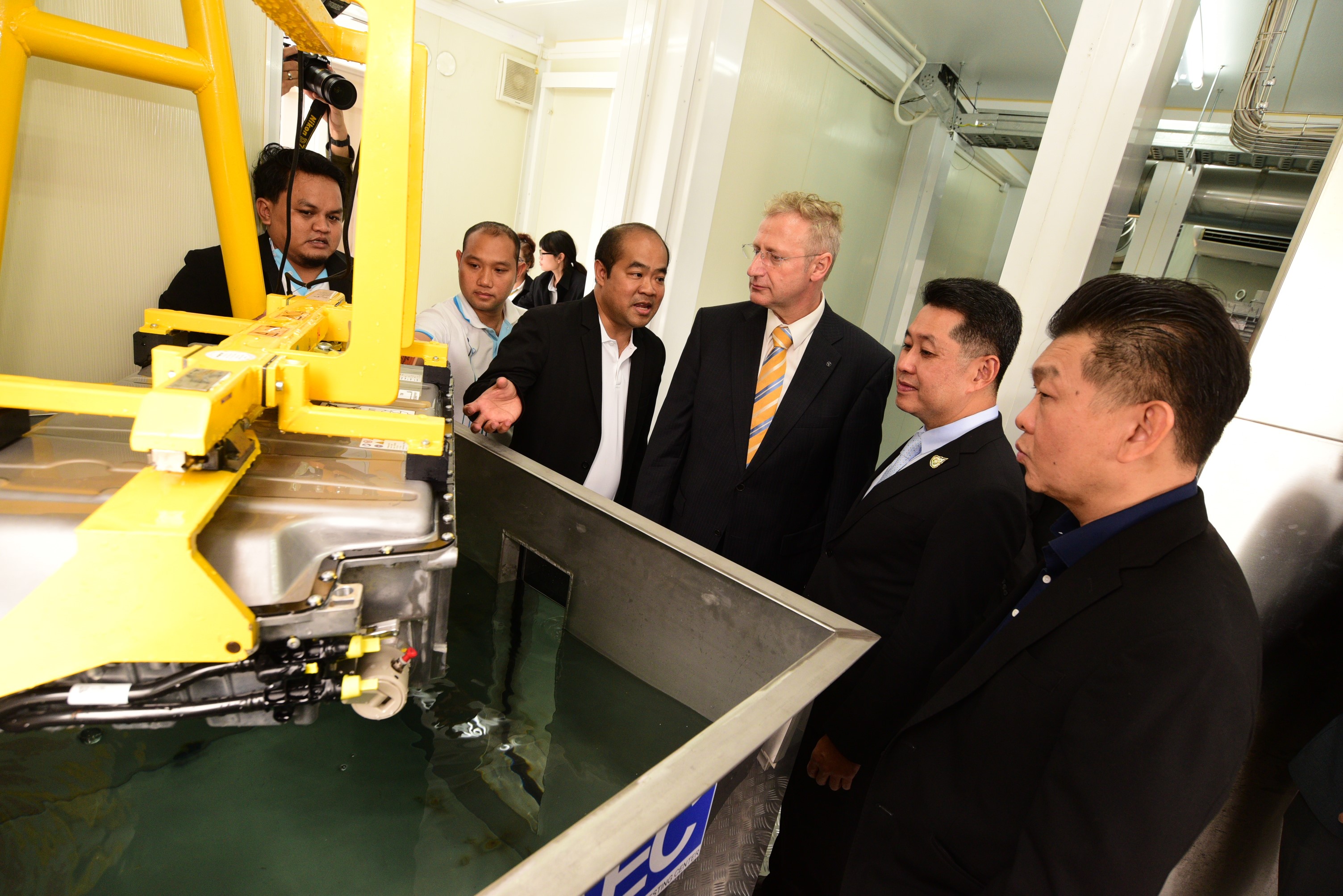 สำนักงานพัฒนาวิทยาศาสตร์และเทคโนโลยีแห่งชาติ (สวทช.) และบริษัท เมอร์เซเดส-เบนซ์ แมนูแฟคเจอริ่ง (ประเทศไทย) จำกัด ลงนามความร่วมมือด้านการวิจัยพัฒนาและถ่ายทอดเทคโนโลยีและสนับสนุนการทดสอบแบตเตอรี่ในยานยนต์ไฟฟ้า โดยมอบให้ศูนย์ทดสอบผลิตภัณฑ์ไฟฟ้าและอิเล็กทรอนิกส์ (PTEC) สวทช. เป็นแล็บทดสอบแบตเตอรี่ยานยนต์ไฟฟ้าแห่งแรกในประเทศไทย ซึ่งครอบคลุมกิจกรรมการจัดตั้งโครงสร้างพื้นฐานด้านคุณภาพของประเทศเพื่อสนับสนุนอุตสาหกรรมยานยนต์ในอนาคต เช่น การจัดตั้งห้องปฏิบัติการทดสอบแบตเตอรี่ และห้องปฏิบัติการทดสอบยานยนต์อัตโนมัติ เป็นต้น โดยตั้งเป้าให้เกิดการใช้งานห้องปฏิบัติการทดสอบแบตเตอรี่ในประเทศไทยและพัฒนาทักษะองค์ความรู้ของผู้ปฏิบัติงานทดสอบในประเทศ เพื่อสนองนโยบายการสนับสนุนอุตสาหกรรมยานยนต์สมัยใหม่และพัฒนาฐานการผลิตแบตเตอรี่ให้เกิดในประเทศไทยอย่างมีคุณภาพตามมาตรฐานสากล