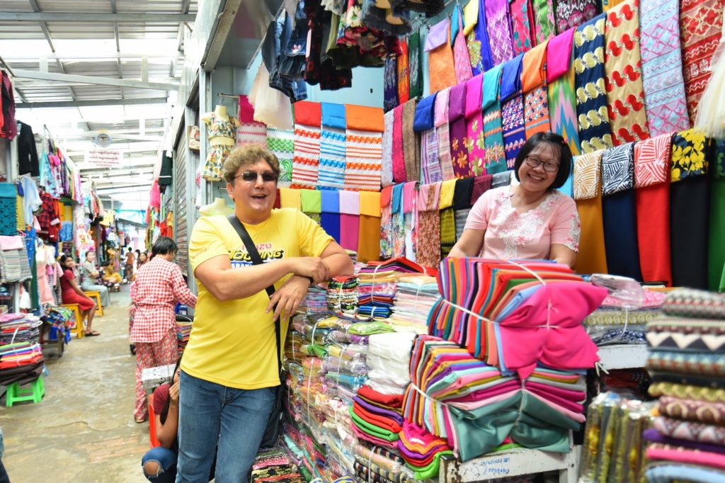 จุดหมายต่อมาคือการหาซื้อของฝากจากเมืองทวาย ที่ตลาด Mingalar หรือตลาด 100 ปี ซึ่งตลาดนี้จะมีสินค้าหลากหลายให้เลือกซื้อ ไม่ว่าจะเป็นผงทานาคาสำหรับประทินผิวของสาวๆ ถั่วตัดของอร่อยขึ้นชื่อของประเทศเมียนมาร์ กุ้งแห้งอันเลื่องชื่อ และผ้าพื้นเมืองที่เป็นลวดลายเฉพาะ มีขายแค่ที่เมืองทวายเท่านั้น ทุกคนต่างเลือกซื้อสินค้ากลับมาเป็นของฝากกันอย่างถ้วนหน้า จ่ายเงินกันเป็นหมื่นจ๊าดเลยทีเดียว จากนั้นก็แวะเติมพลังมื้อกลางวัน ณ ร้านกุหลาบ ซึ่งตั้งอยู่ภายในสนามกอล์ฟเมืองทวาย อาหารอร่อย รสชาติดี พนักงานบริการเป็นเยี่ยม