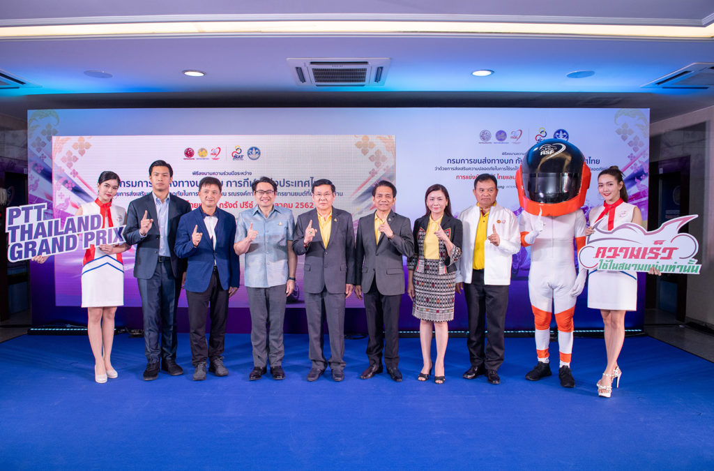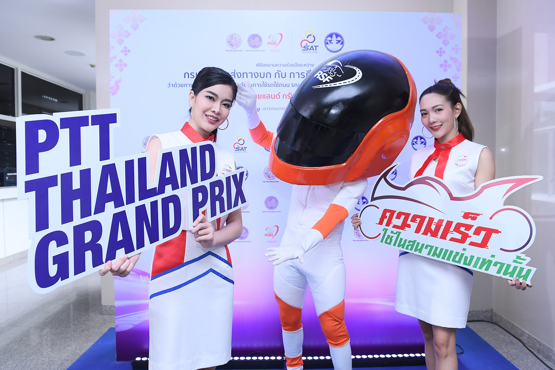 กรมการขนส่งทางบก ร่วมกับ การกีฬาแห่งประเทศไทย ได้จัดงานแถลงข่าวพิธีลงนาม ความร่วมมือและการสนับสนุน การแข่งขัน โมโตจีพี รายการ พีทีที ไทยแลนด์ กรังด์ปรีซ 2019 ขึ้นอย่างยิ่งใหญ่ เพื่อแสดงเจตนารมณ์ในการใช้ศึกจักรยานยนต์ทางเรียบชิงแชมป์โลก สะท้อนสู่นโยบายการขับขี่ปลอดภัยเพื่อรณรงค์ให้เป็นวาระสำคัญของประเทศไทย