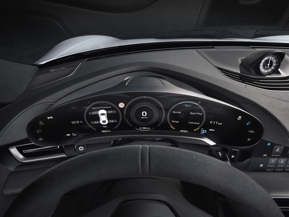 แผงหน้าปัทม์ที่อัดแน่นไปด้วยนวัตกรรมล้ำยุคประกอบด้วย หน้าจอแสดงผลแนวโค้งขนาดใหญ่ 16.8นิ้วพร้อมฉายภาพกรอบทรงกลมอันเป็นเอกลักษณ์ของยนตรกรรมสปอร์ตปอร์เช่ ชิ้นส่วนที่ครอบบนแผงหน้าปัทม์ถูกนำออกไปเพื่อให้มั่นใจว่าแผงหน้าปัทม์จะมีความเรียวบางและให้มุมมองที่ทันสมัยเฉกเช่นเดียวกันกับสมาร์ทโฟนหรือแท็บเล็ตคุณภาพสูงตกแต่งด้วยวัสดุกระจกโพลาไรซ์ ซึ่งมีคุณสมบัติในการลดแสงสะท้อนที่ดีเยี่ยม