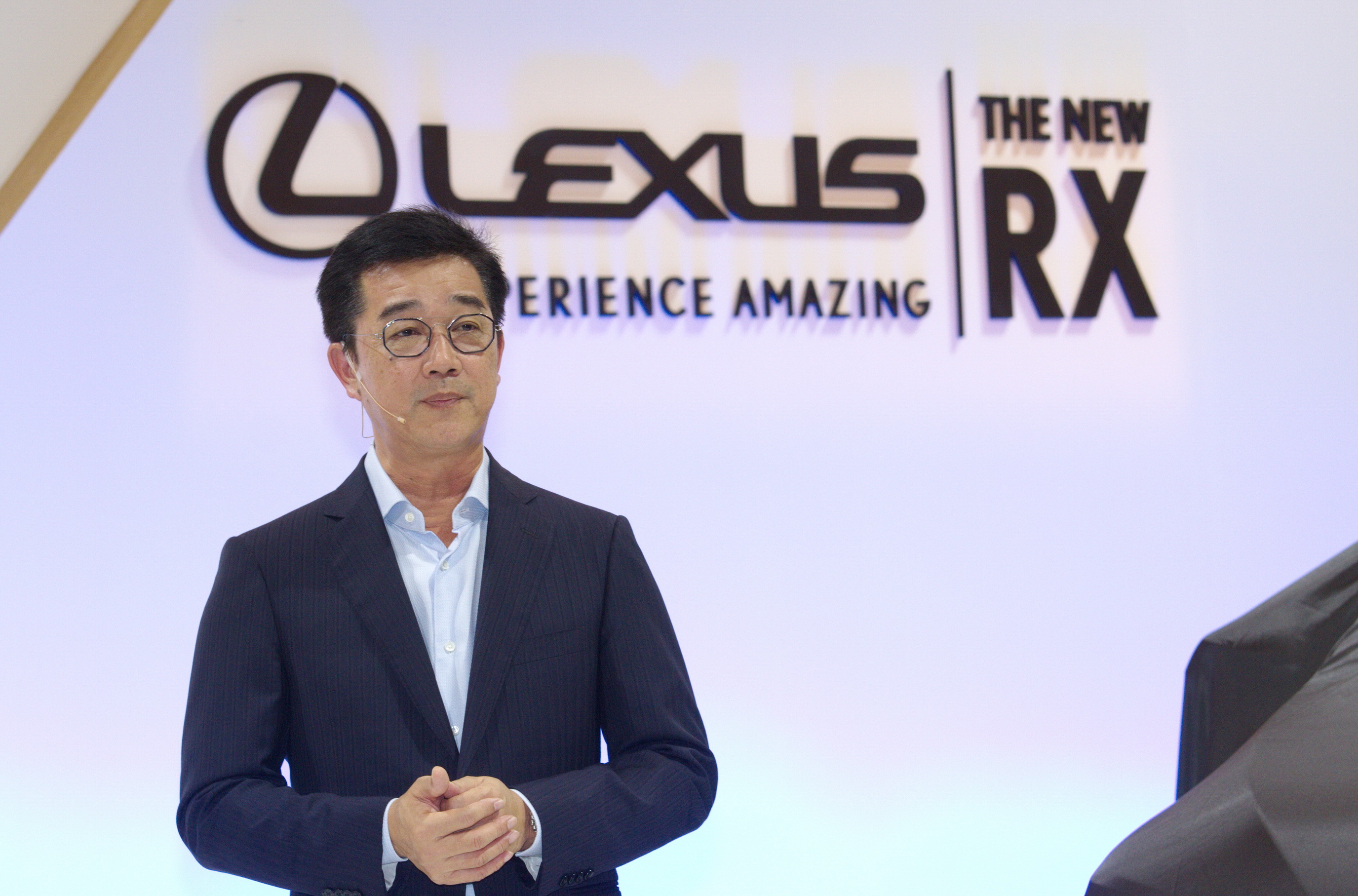 นายวุฒิกร สุริยะฉันทนานนท์ รองกรรมการผู้จัดการใหญ่ พร้อมด้วย มร.เคนจิ ซาคาอิ ผู้ประสานงานกรรมการผู้จัดการใหญ่ บริษัท โตโยต้า มอเตอร์ ประเทศไทย จำกัด ร่วมเผยโฉมยนตรกรรมครอสโอเวอร์หรูระดับโลก เลกซัส RX ใหม่ “Unbounded Pleasure… สุนทรียภาพที่ไร้ขีดจำกัด” ที่โดดเด่นด้วยดีไซน์อันล้ำสมัย ผสานกับเอกลักษณ์การออกแบบที่ประณีต พิถีพิถันก้าวล้ำด้วยเทคโนโลยีความสะดวกสบายและความปลอดภัยเหนือระดับ ควบคู่ไปกับสมรรถนะการขับขี่อันยอดเยี่ยม
