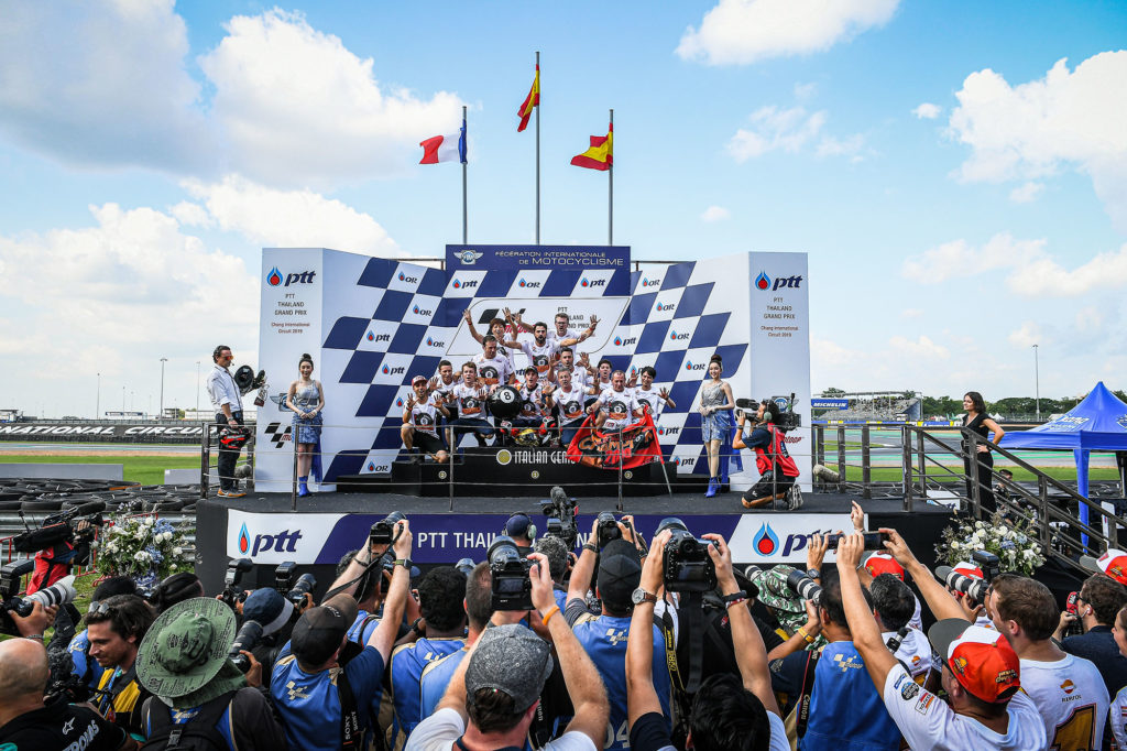 ประเทศไทย เสิร์ฟเกมโมโตจีพีสุดมันส์ระดับ 5 ดาว สู่สายตาแฟนความเร็วทั่วโลกในรายการ พีทีที ไทยแลนด์ กรังด์ปรีซ์ 2019 ขณะ มาร์ค มาร์เกซ ยอดนักบิดสแปนิช จาก เรปโซล ฮอนด้า ไล่แซง ฟาบิโอ กวาร์ตาราโร รุกกี้ชาวฝรั่งเศสจาก ปิโตรนาส ยามาฮ่า เอสอาร์ที ก่อนบิดเข้าป้ายเป็นคันแรก คว้าแชมป์ พีทีที ไทยแลนด์ กรังด์ปรีซ์อย่างสุดมันส์ เถลิงบัลลังก์แชมป์โลกสมัยที่ 8 อย่างยิ่งใหญ่บนแผ่นดินไทย ทางด้าน “ก้อง” สมเกียรติ จันทรา ยอดนักบิดดาวรุ่งชาวไทยวัย 20 ปี จาก อิเดมิตสึ ฮอนด้า ทีม เอเชีย สร้างผลงานกระหึ่มโฮมเรซด้วยการคว้าอันดับ 9 ในศึก โมโตทู เมื่อวันอาทิตย์ที่ผ่านมา