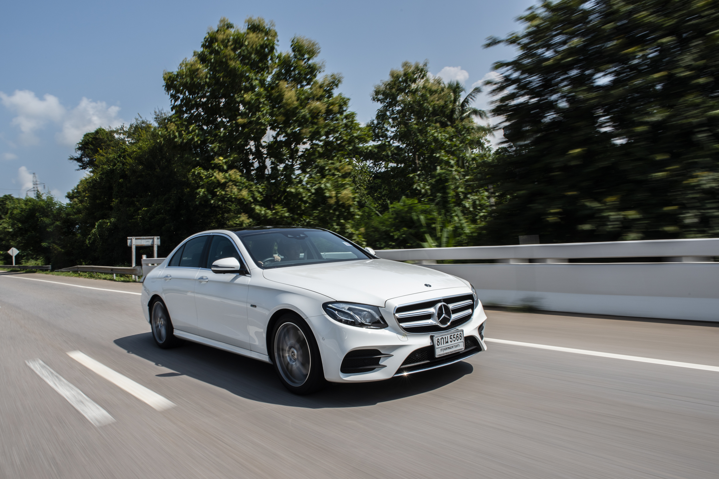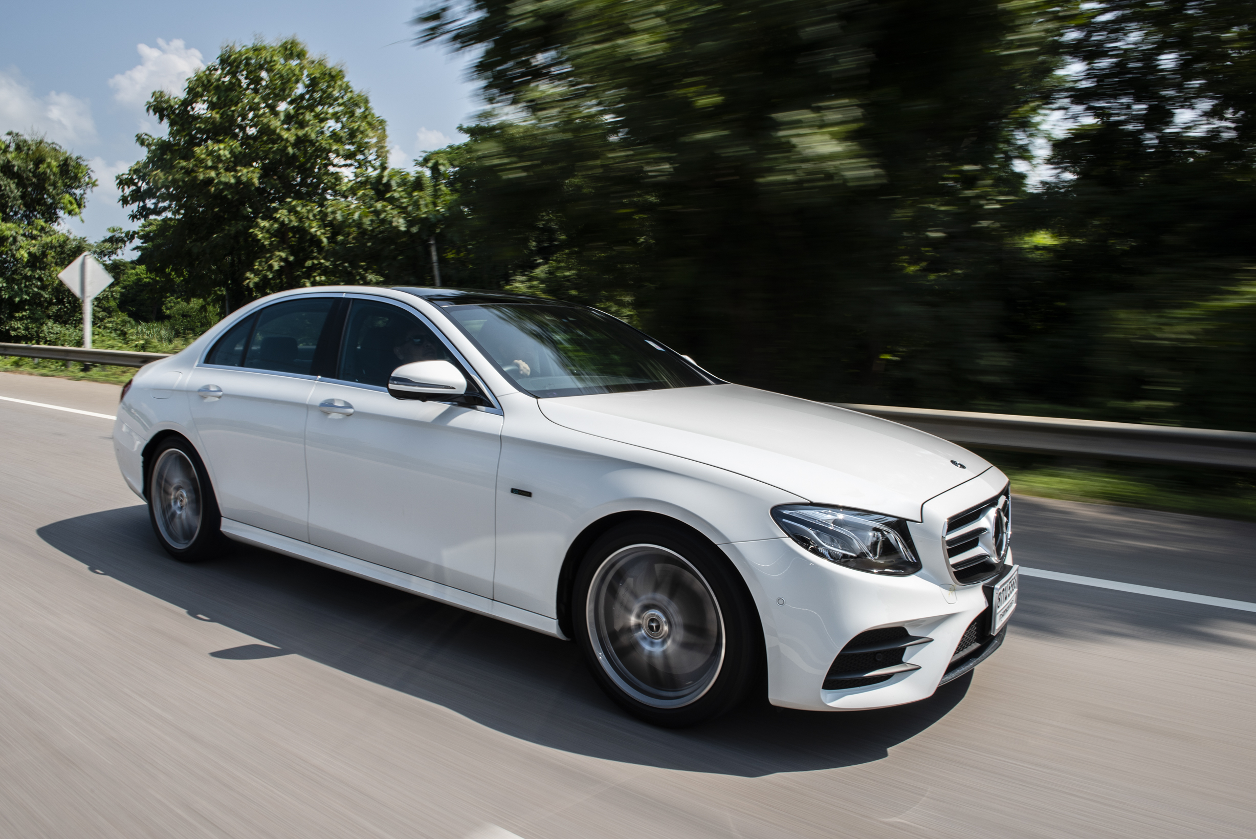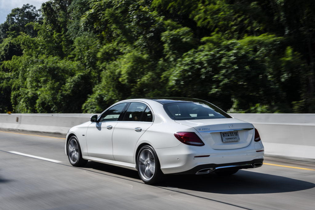 Mercedes-Benz E 350 e ขับเคลื่อนด้วยเครื่องยนต์เบนซิน 4 สูบแถวเรียง ความจุกระบอกสูบ 1,991 ซีซี กำลังแรงม้าสูงสุดที่ 211 แรงม้า ที่ 5,500 รอบ/นาที แรงบิด 350นิวตันเมตร ที่ความเร็วรอบ 1,200-4,000 ต่อนาที ขณะเดียวกัน ยังได้รับกำลังเสริมจากมอเตอร์ไฟฟ้าที่ 88 แรงม้า แรงบิดสูงสุดจากมอเตอร์ไฟฟ้าที่ 440นิวตันเมตรทำให้อัตราเร่ง 0-100 กม./ชม. อยู่ที่ 6.2 วินาที ความเร็วสูงสุด 250 กม./ชม. ขับเคลื่อนด้วยระบบส่งกำลังแบบเกียร์อัตโนมัติเดินหน้า 9จังหวะ(9G-TRONIC PLUS)พร้อมระบบเปลี่ยนเกียร์ที่พวงมาลัย .ระหว่างการเดินทางมีรถในขบวนหลายคัน เข้าสถานีบริการน้ำมันเพื่อเติมเชื้อเพลิงสำหรับการเดินทาง ใช้เวลาต่อคันไม่ถิงนาที ซึ่งหากเป็นรถพลังไฟฟ้าล้วนๆคงวิ่งได้ระยะทางแค่ครึ่งเดียวและต้องเวลาเติมไฟฟ้าข้ามวันข้ามคืน