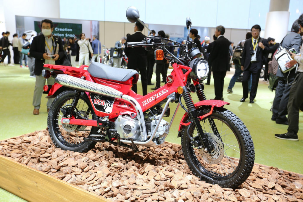 ในส่วนของการจัดแสดงรถจักรยานยนต์ จะมีการเปิดตัว รถจักรยานยนต์ ซีที 125 (CT125) เป็นครั้งแรกในโลก ซึ่งเป็นรถจักรยานยนต์ต้นแบบที่ได้รับการพัฒนาต่อยอดจากซีรีส์รถจักรยานยนต์แห่งตำนาน ซูเปอร์ คับ (Super Cub) ที่ได้รับการตอบรับที่ดีเยี่ยมจากลูกค้าทั่วโลก รวมทั้งการเผยโฉมเป็นครั้งแรกในโลกของ ฮอนด้า เบ็นลี่ อี (Benly e:) รถสกู๊ตเตอร์ไฟฟ้าเพื่อการพาณิชย์ และฮอนด้า จีโร่ อี (Gyro e:) รถสกู๊ตเตอร์สามล้อไฟฟ้า นอกจากนี้ ยังได้จัดแสดงรถจักรยานยนต์ CRF1100L Africa Twin Dual Clutch Transmission, CRF1100L Africa Twin Adventure Sports ES Dual Clutch Transmission และ เอดีวี 150 (ADV150) เป็นครั้งแรกในประเทศญี่ปุ่นอีกด้วย