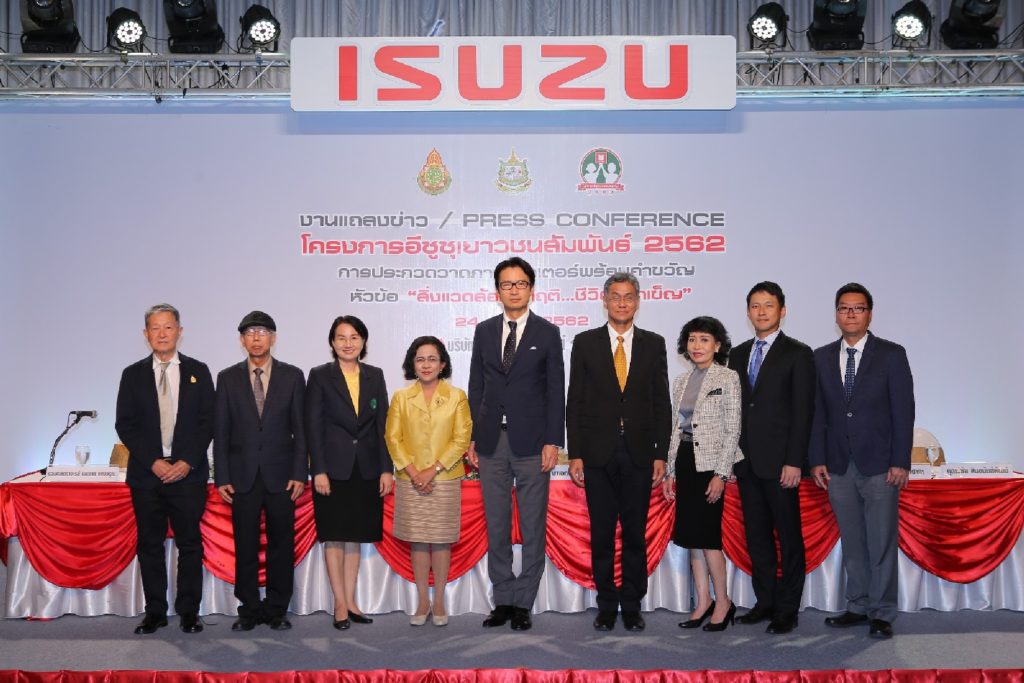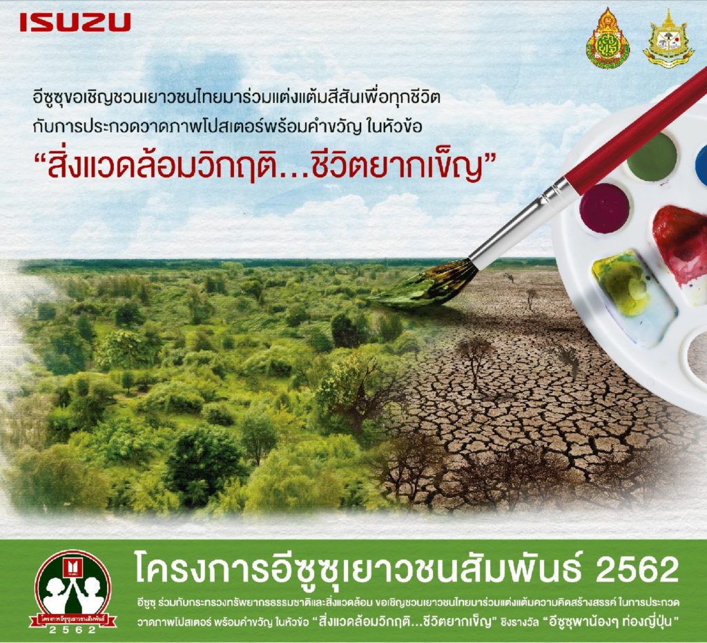 บริษัท ตรีเพชรอีซูซุเซลส์ จำกัด ร่วมกับ กระทรวงทรัพยากรธรรมชาติและสิ่งแวดล้อม และสำนักงานคณะกรรมการการศึกษาขั้นพื้นฐาน กระทรวงศึกษาธิการ จัดงานแถลงข่าวเปิดโครงการ “อีซูซุเยาวชนสัมพันธ์ 2562” เวทีสร้างสรรค์ผลงานศิลป์ เพื่อจุดประกายความคิดสู่การเป็นเยาวชนจิตสาธารณะ เชิญชวนเยาวชนไทยทั่วประเทศร่วมส่งผลงานรอบคัดเลือก ในหัวข้อ “สิ่งแวดล้อมวิกฤติ…ชีวิตยากเข็ญ” เพื่อลุ้นสิทธิ์ชิงรางวัลเดินทางทัศนศึกษาสุดล้ำค่า “อีซูซุพาน้องๆ ท่องญี่ปุ่น” รวมที่พักและอาหารฟรีตลอดการเดินทาง 7 วัน