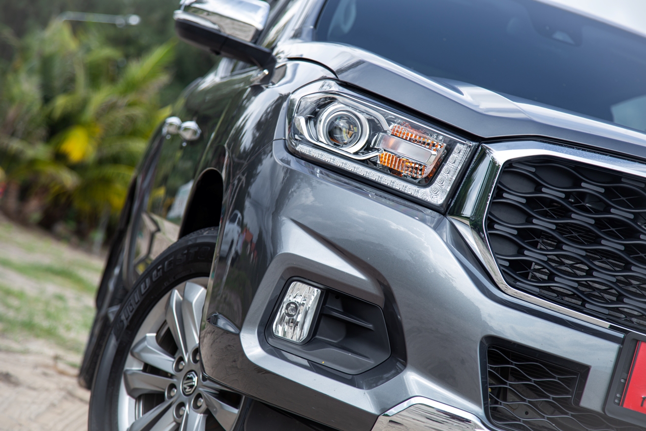รถที่ ทีมงาน buzzbiz24.com ได้ไปทดสอบครั้งนี้เป็น MG EXTENDER ดับเบิลแค็บ 4WD X 6AT หรือรุ่นท็อปสุด รูปโฉมของ MG EXTENDER หล่อเหลาเอาการ ดูบึกบึน โดดเด่นด้วยกระจังหน้าแบบโมเดิร์นดีไซน์ที่เป็นเอกลักษณ์ของเอ็มจี พร้อมมิติตัวถังขนาดใหญ่ ในขณะที่ไฟหน้าโปรเจคเตอร์ (Projector) พร้อม Daytime Running Lights บันไดข้าง และกล้องมองหลังพร้อมเซนเซอร์ขณะถอย ติดตั้งมาเป็นอุปกรณ์มาตรฐานตั้งแต่ในรุ่น Giant Cab แบบยกสูง
