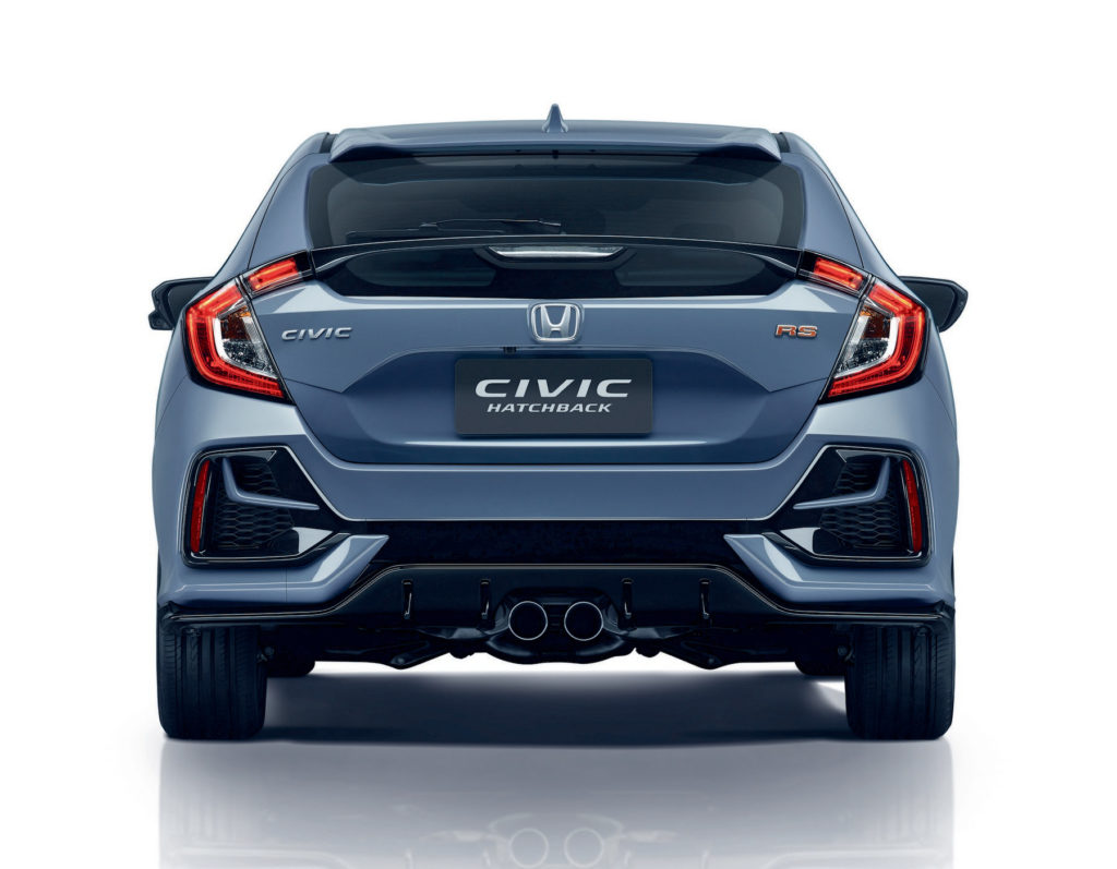 ฮอนด้า ซีวิคแฮทช์แบ็ก ใหม่มาพร้อมความสปอร์ตโฉบเฉี่ยวและหรูหรา เสริมสปิริตความสปอร์ตให้โดดเด่นและดุดันยิ่งขึ้นด้วยกันชนหน้า-หลังดีไซน์ใหม่ มาพร้อมไฟหน้าพร้อมไฟส่องสว่างสำหรับการขับขี่ในเวลากลางวันแบบ LED ชุดแต่งสไตล์สปอร์ตแบบ RS รอบคัน และท่อไอเสียแบบคู่ตรงกลางสไตล์สปอร์ต และล้ออัลลอยดีไซน์ใหม่ขนาด 17 นิ้วอีกทั้งไฟท้ายรูปทรงตัว C แบบ LED เอกลักษณ์เฉพาะของซีวิคที่ผสานให้ซีวิค แฮทช์แบ็กเป็นยนตรกรรม5 ประตูที่โฉบเฉี่ยวโดดเด่นไม่เหมือนใครและสปอร์ตเร้าใจกว่าที่เคยเพิ่มความมั่นใจในทุกการขับขี่ด้วยเทคโนโลยีความปลอดภัยอัจฉริยะ ฮอนด้าเซนส์ซิ่ง (Honda SENSING)