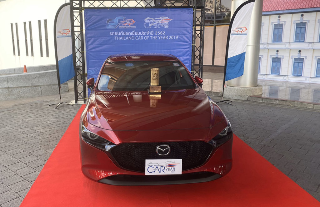 “มาสด้า3” คว้ารางวัลรถยนต์ยอดเยี่ยมประจำปี 2562 หรือ THAILAND CAR OF THE YEAR 2019จากสรยท. จากการทดสอบและลงคะแนนครั้งสุดท้าย สรยท.จัดพิธีมอบรางวัลยิ่งใหญ่ พร้อมมอบโล่เกียรติยศให้กับรถยนต์ที่ผ่านเข้ารอบสุดท้าย