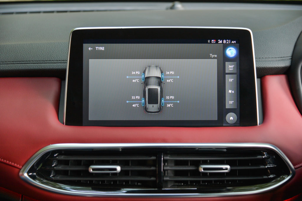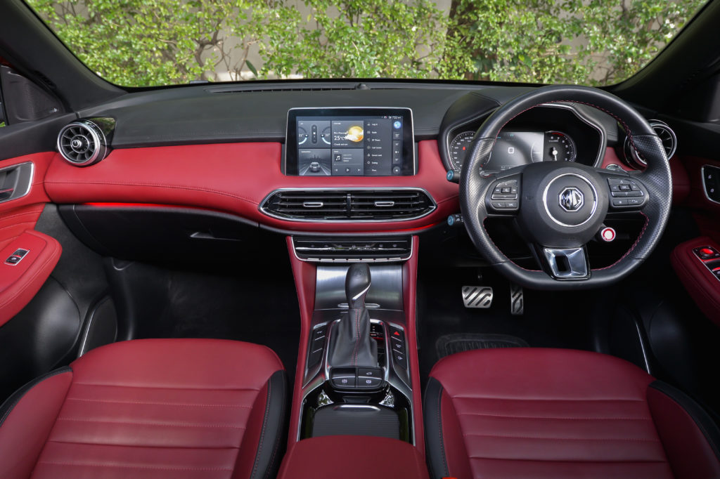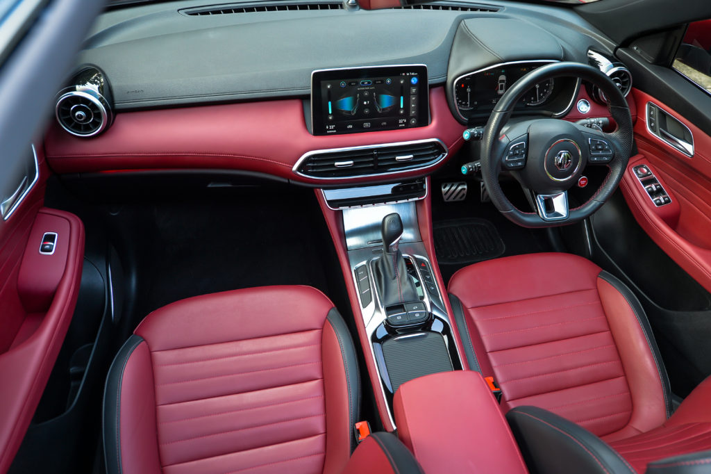 เข้ามาดูในห้องโดยสารก็ยิ่งร้องว้าว เพราะตกแต่งแบบทูโทน สีแดง-ดำ การออกแบบเล่นระดับมีสไตล์และตกแต่งด้วยวัสดุภายในให้สัมผัสนุ่ม(Soft Touch)ครอบคลุมทั้งบริเวณคอนโซลหน้าและแผงประตูทั้งด้านหน้าและด้านหลัง เพิ่มความพรีเมี่ยม หรูหรา ยิ่งขึ้นด้วยเบาะนั่งคู่หน้าปรับด้วยไฟฟ้าแบบBucket Seat ทรงสปอร์ตสีดำสลับแดง ขณะที่เบาะหลังนั่งสบายปรับพับได้แบบ 60:40 พร้อมพนักพิงปรับองศาได้และที่วางแขนขนาดใหญ่โดดเด่นยิ่งขึ้นด้วยไฟในห้องโดยสารแบบInteractive Ambient Light ที่มีแสงต้อนรับทันทีที่เปิดประตูและสามารถปรับโทนแสงภายในห้องโดยสารได้มากถึง 64 เฉดสี รวมทั้งยังสามารถปรับเปลี่ยนแบบอัตโนมัติตามโหมดการขับขี่พร้อมหลังคาซันรูฟแบบพาโนรามา (Panoramic Sunroof)ขนาดใหญ่ 1.1 ตารางเมตร จุดขายที่เป็นลายเซ็นเฉพาะของเอ็มจี