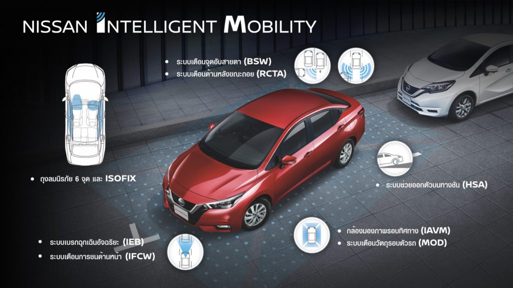นอกจากเทคโนโลยีนิสสัน อินเทลลิเจนต์ โมบิลิตี แล้ว นิสสัน อัลเมร่า ใหม่ ยังอัดแน่นไปด้วยอุปกรณ์มาตรฐานที่เพิ่มความปลอดภัยทั้งในเชิงการป้องกันการเกิดอุบัติเหตุ (Active Safety) และ ระบบลดความรุนแรง ความเสียหายจากอุบัติเหตุ (Passive Safety) โดยออฟชั่นต่างๆก็ขึ้นกับราคาค่าตัวอัลเมร่า ใหม่รุ่นต่างๆ โดยมีราคาเริ่มต้นที่ รุ่น S แค่ 4.99 แสนบาทซึ่งเป็นรุ่นประหยัดสุด ออฟชั่นน้อยสุด ประมาณว่าเป็นอีโคคาร์ รถราคาประหยัด แต่หากต้องการฟีเจอร์มากขึ้น ก็เลือกรุ่น E ราคา 5.09 แสนบาท รุ่น EL ราคา 5.59 แสนบาท รุ่น V ราคา 5.99 แสนบาท และรุ่นท็อปสุด เทอร์โบ 1.0 ลิตร รุ่น VL ราคา 6.39 แสนบาท