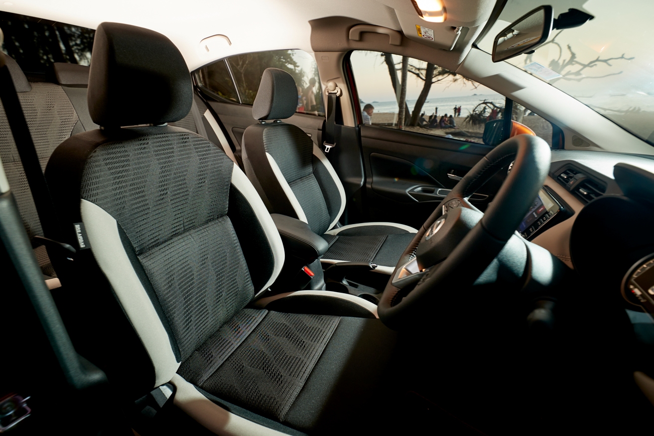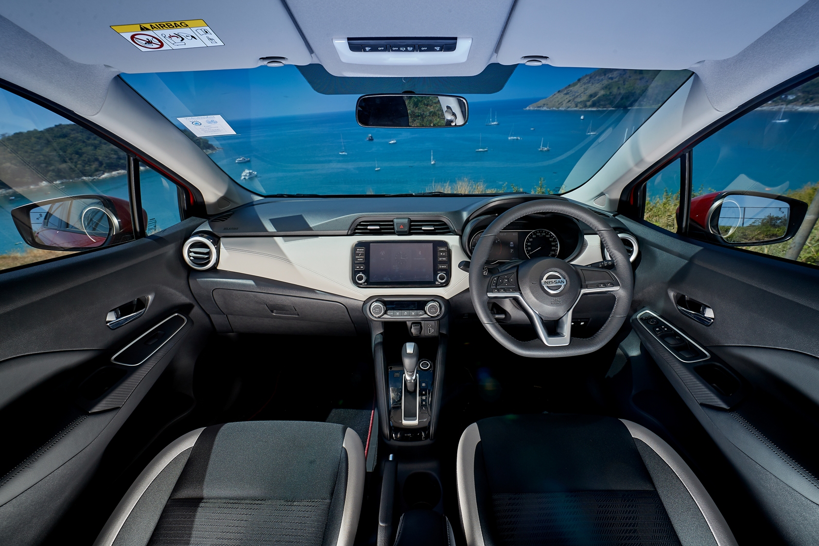 ขณะที่ภายในของนิสสัน อัลเมร่า ใหม่ ได้รับการออกแบบใหม่ทั้งหมด แบบก้าวกระโดด แบบ Less is More แต่ก็มีบางคนวิจารณ์ว่า มันโล้นๆว่างๆไปนะ ก็แล้วแต่มุมมองครับ แต่ที่แน่ๆดีไซน์แบบนี้มีเป้าหมายเพื่อรองรับหน้าจอแสดงผลใหม่ ระบบอินโฟเทนเมนต์ ฟีเจอร์ล้ำๆ ส่วนพวงมาลัย และเบาะนั่ง ห้องโดยสารภายในที่มีสไตล์ ใช้วัสดุคุณภาพสูง และเน้นความปราณีตในการประกอบ ช่วยเสริมความโดดเด่นและความหรูหรา